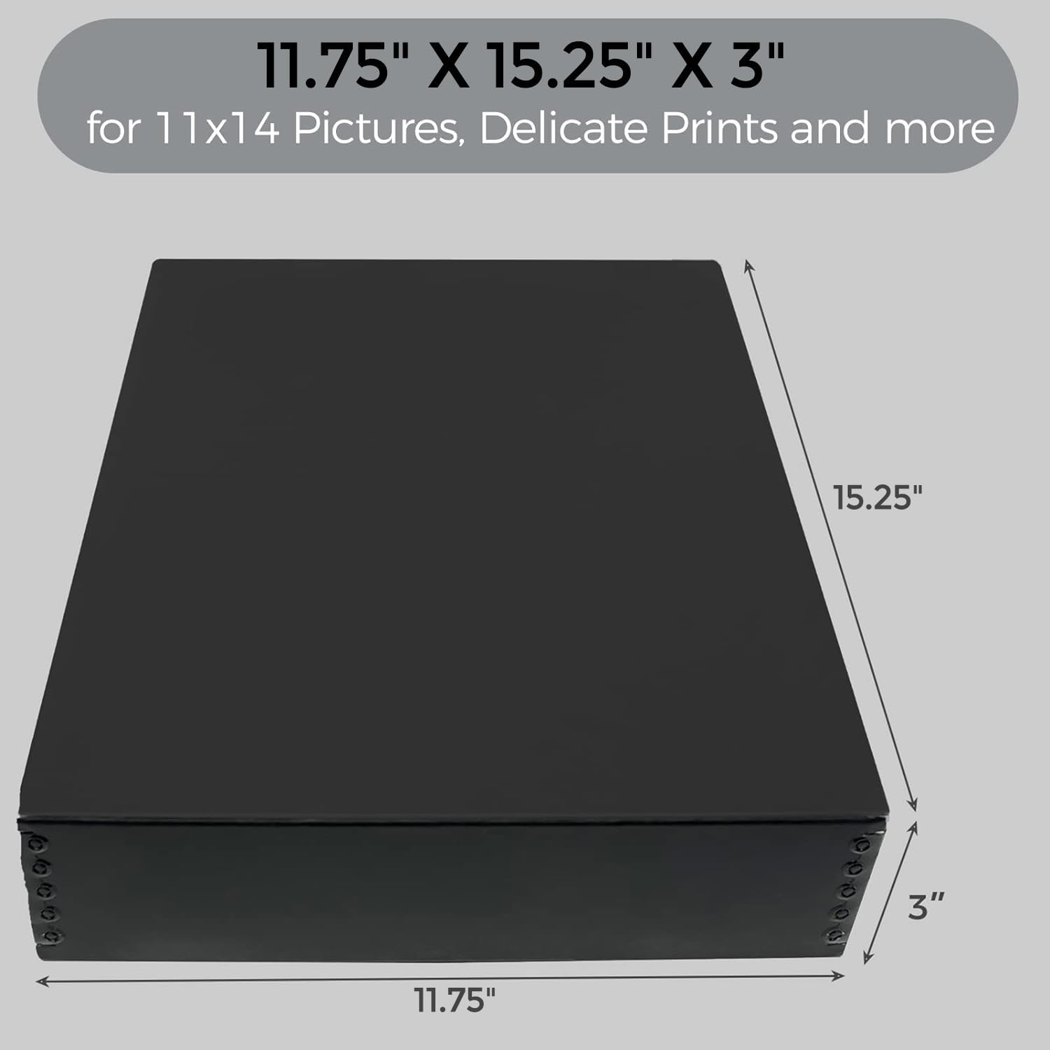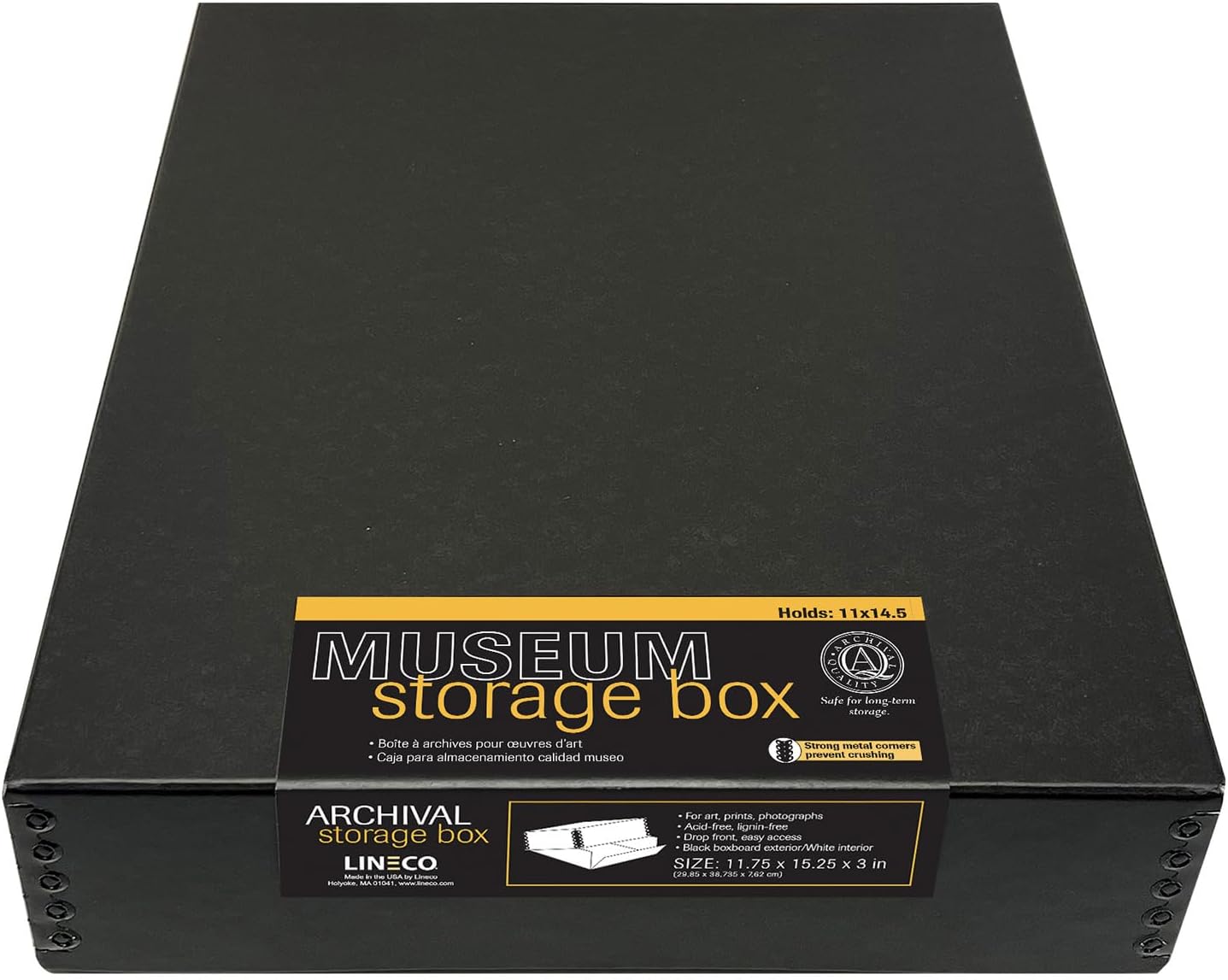 Lineco Archival 11 x 14 x 3 inches Museum Archival Storage Box, Drop Front Design, Acid-Free with Metal Edge. Preserves Photos Documents, Black