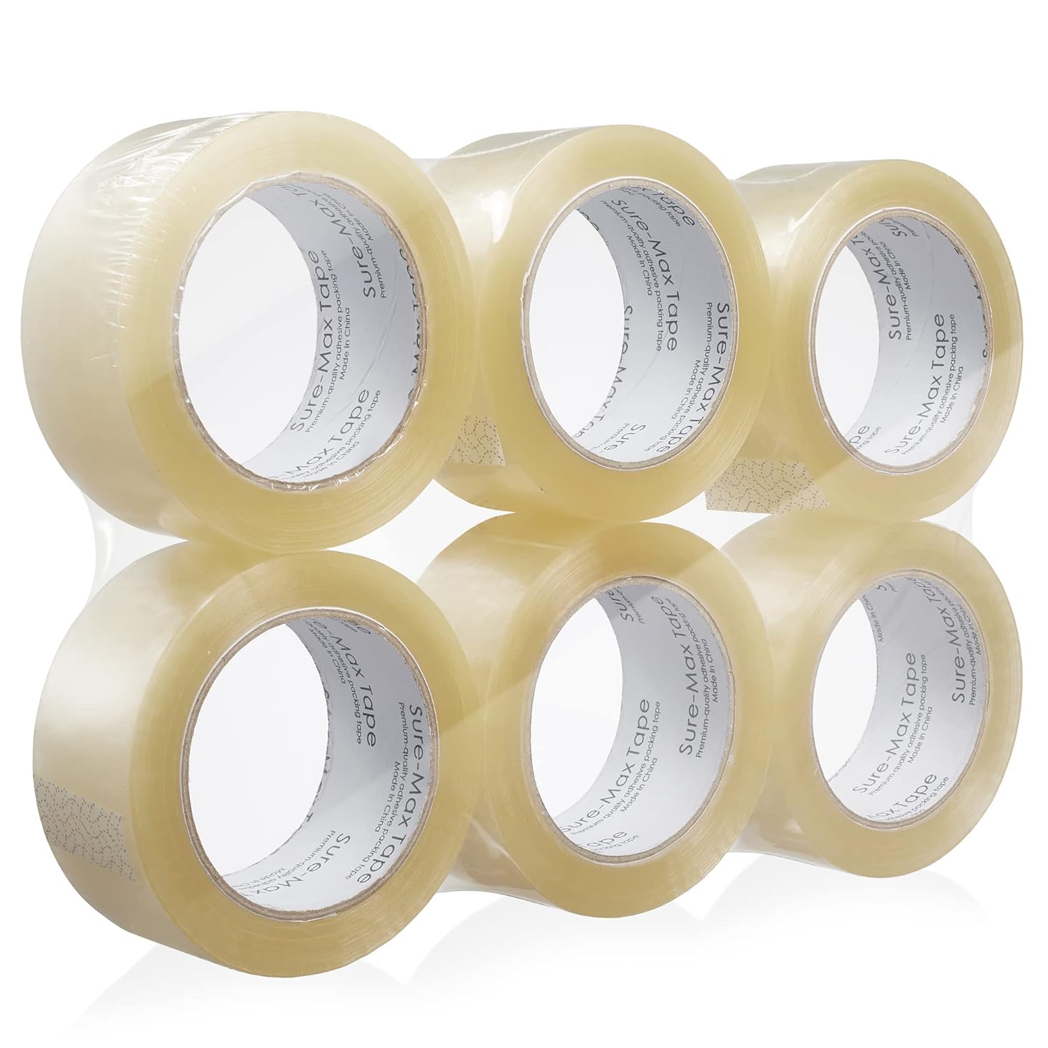 Sure-Max Premium Carton Packing Tape 1.8 mil 330 Feet (110 Yards) - Clear - 6 Rolls
