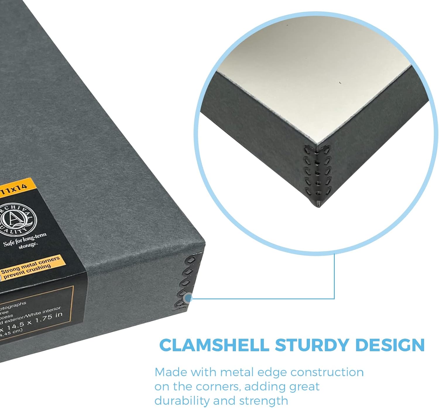 Lineco Archival Folio Storage Boxboard, Acid-Free with Metal Edges Boxboard, 11.5 X 14.5 X 1.75 Inches, Longevity Organize and Store Photos Documents Crafts Cards Magazines Prints DIY, Gray Exterior