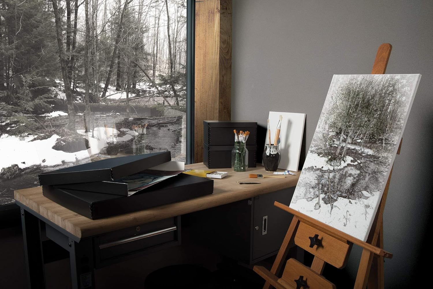 - Drop-front deep lid box keeps out dust, dirt and damaging light, while metal edges add strength, support and a sleek look