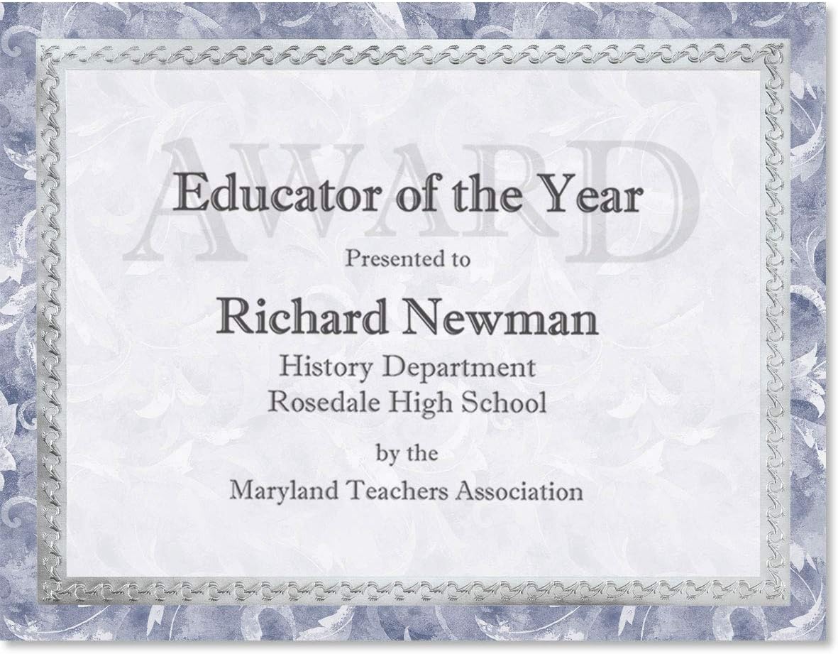 PaperDirect Blue Marbleized Leaf Specialty Certificates, Silver Foil Embossed Border 8 1/2 inch x 11 inch, 38lb Cover Stock, 50 Count, for School, Work, Diplomas & Award Certificates