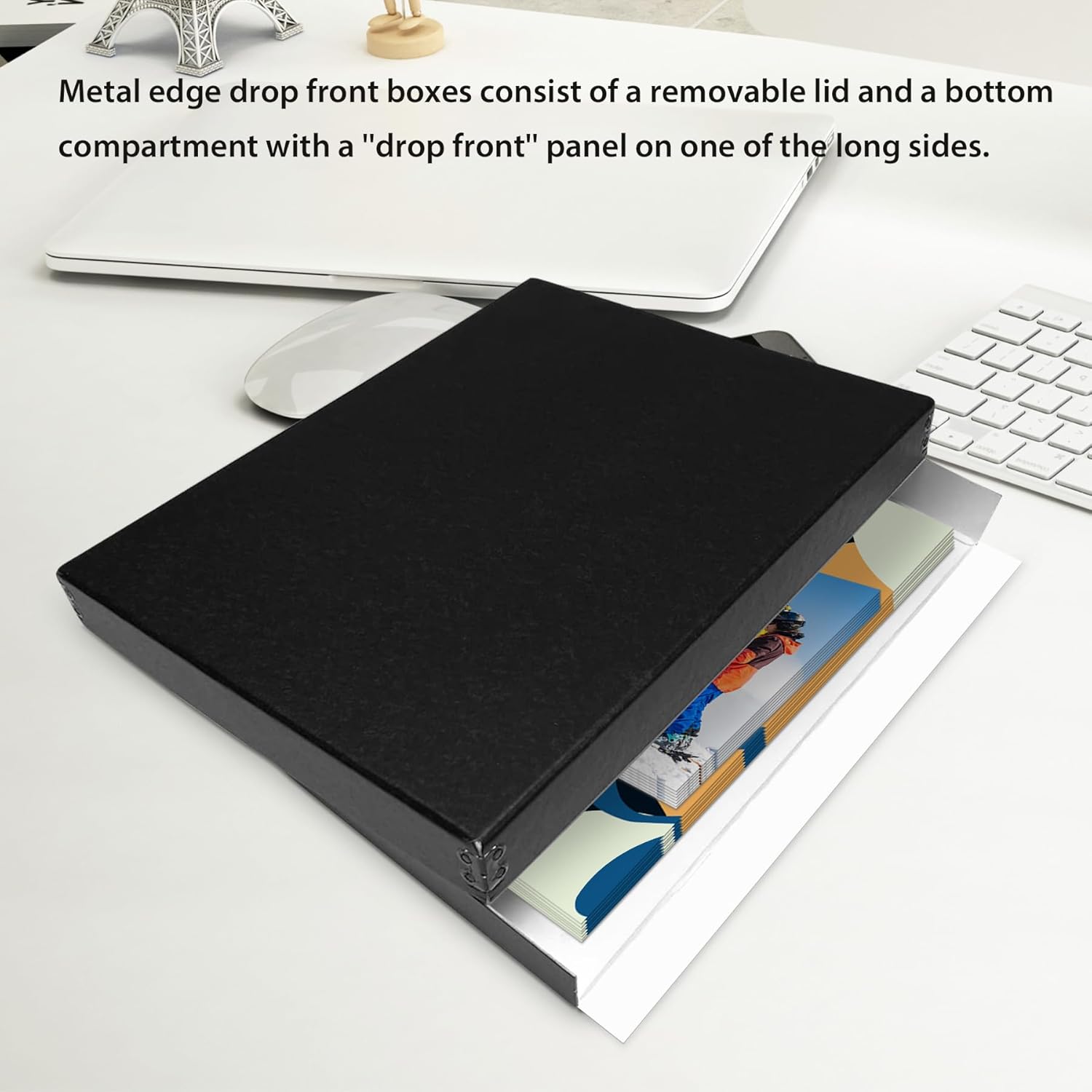 Lineco Museum Archival Storage Box, 11.75x17.75x1.5 in. Drop Front Design. Acid-Free with Metal Edge. Organize Photos, Pictures, Prints, Documents, Crafts, DIY. Black, 1 Pack