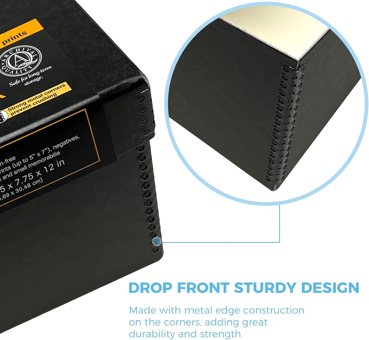 Lineco Archival Photo Storage Box, Holds up to 1100 of 5x7 Pictures, 4x6 Photograph Container with Removable Lid. Preserve Snapshot, Negatives, Prints, Films, Card, 5"x7"x12", Black