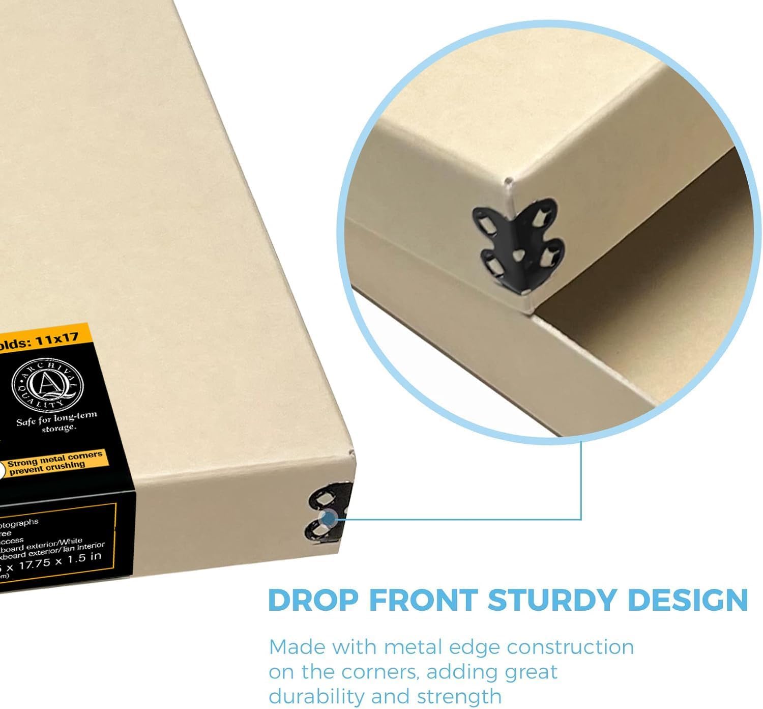 Lineco Museum Archival Storage Box, 11.75x17.75x1.5 in. Drop Front Design. Acid-Free with Metal Edge. Organize Photos, Pictures, Prints, Documents, Crafts, DIY. Tan, 1 Pack