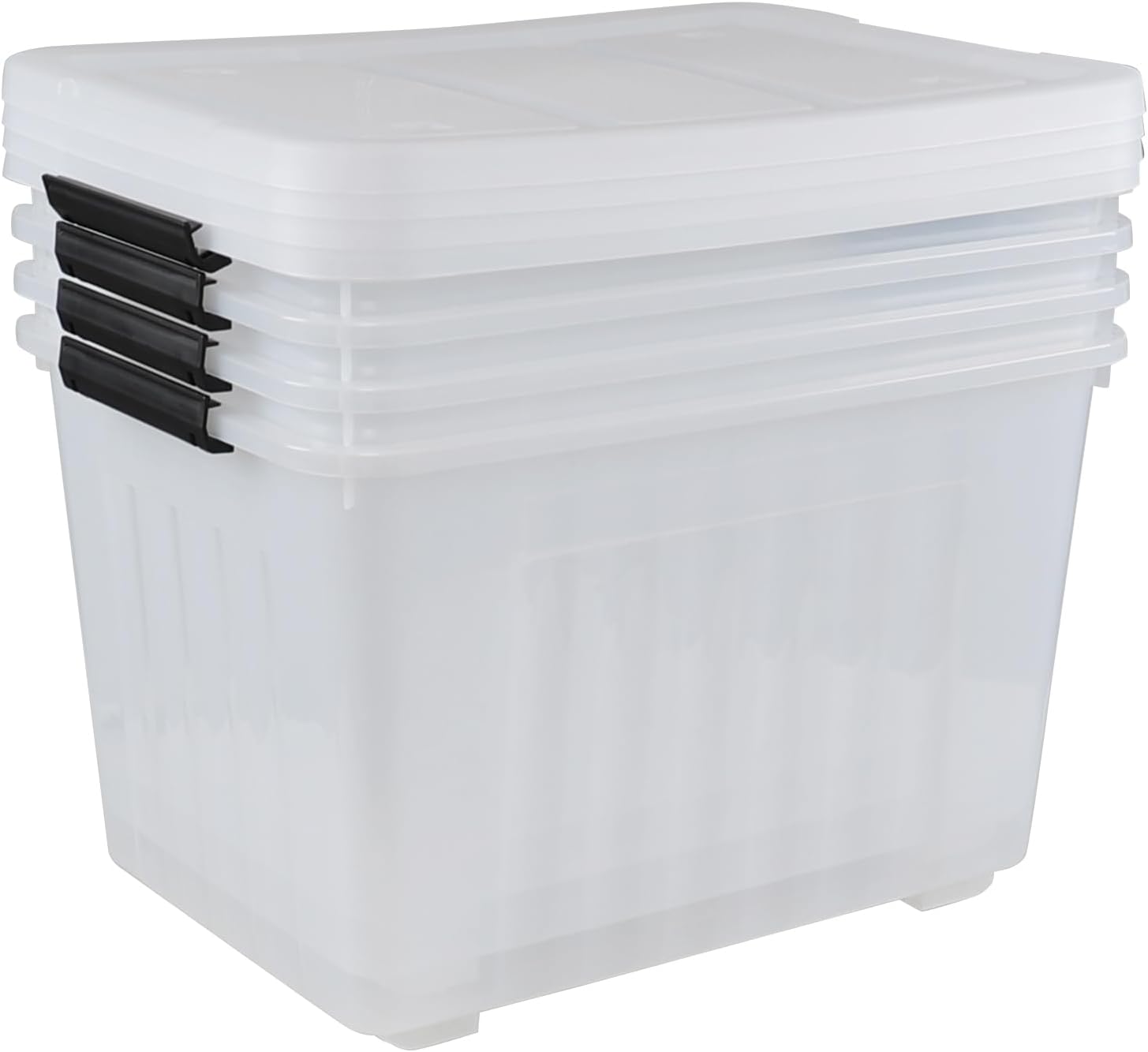 Wekioger 70 Quart Large Lidded Storage Bin, 4 Packs, Plastic Storage Container with Wheels, Latching Storage Box