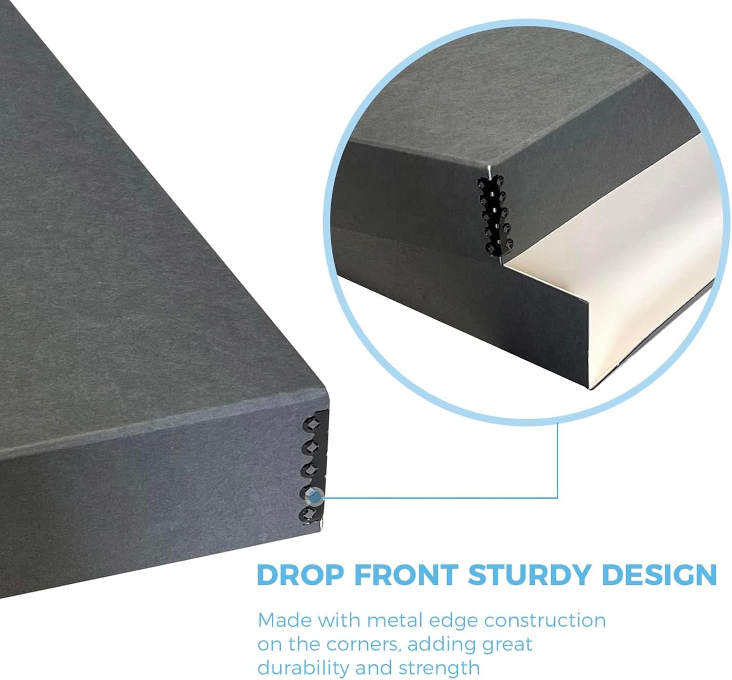 - DROP FRONT STURDY DESIGN: Made with metal edge construction on the corners, adding great durability and strength. The lid does come off and it has a drop-front design, meaning it's super easy for you to slide your prints etc in and out