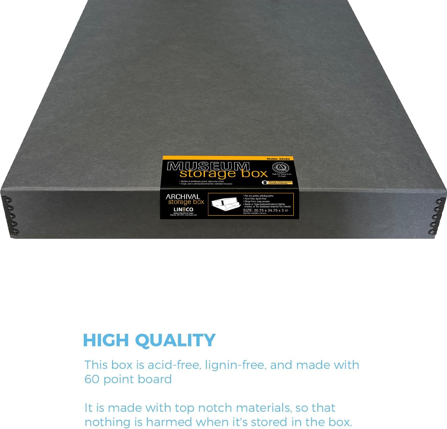 Lineco Museum Archival Storage Box, 20.75x24.75x3 in. Drop Front Design. Acid-Free with Metal Edge. Organize Photos, Pictures, Prints, Documents, Crafts, DIY. Gray, 1 Pack