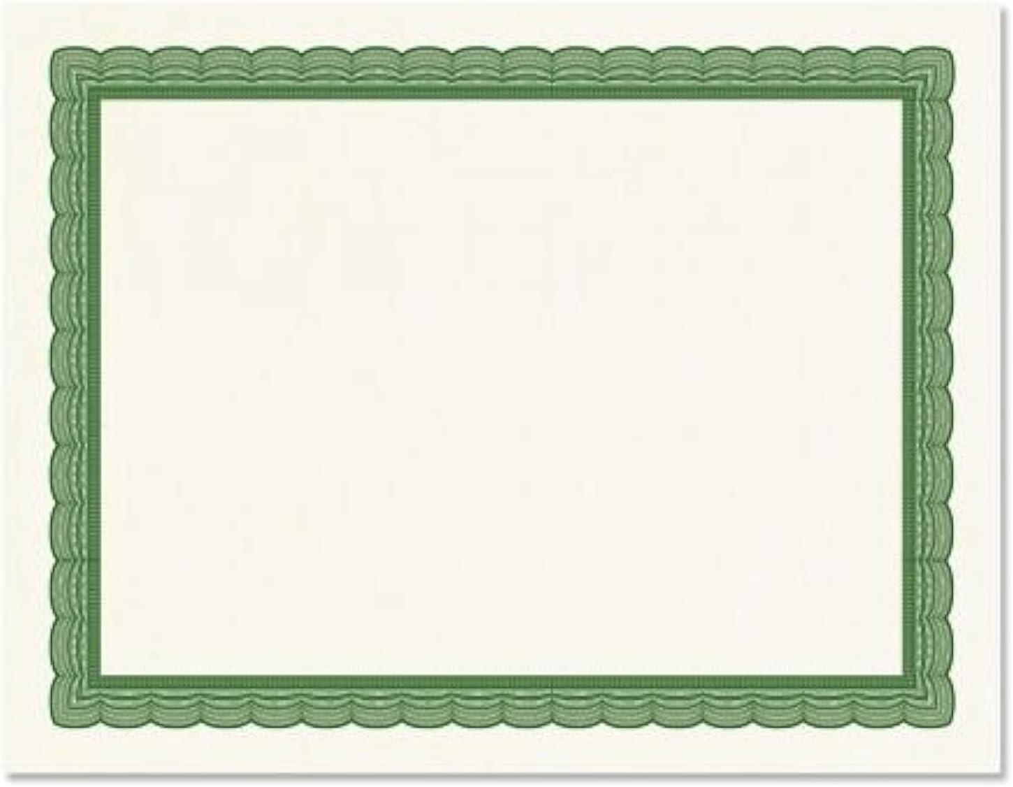 Executive Green & White Parchment Certificate Papers - Pack of 25, Laser & Inkjet Printer Compatible, For Office, Business Awards, Graduation, School Diplomas, 8-1/2" x 11" on 60 lb. Text Stock