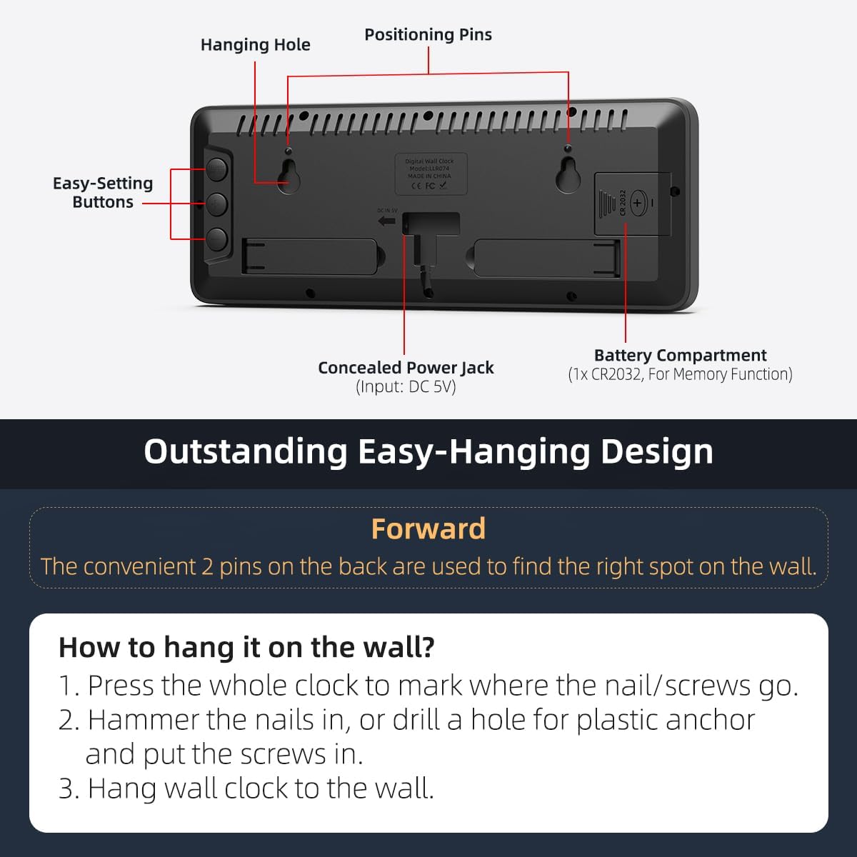 - [Easy-Hanging Design] - We've included two convenient positioning pins on the back to help you effortlessly mark where the nails or screws should go, making your installation a breeze.