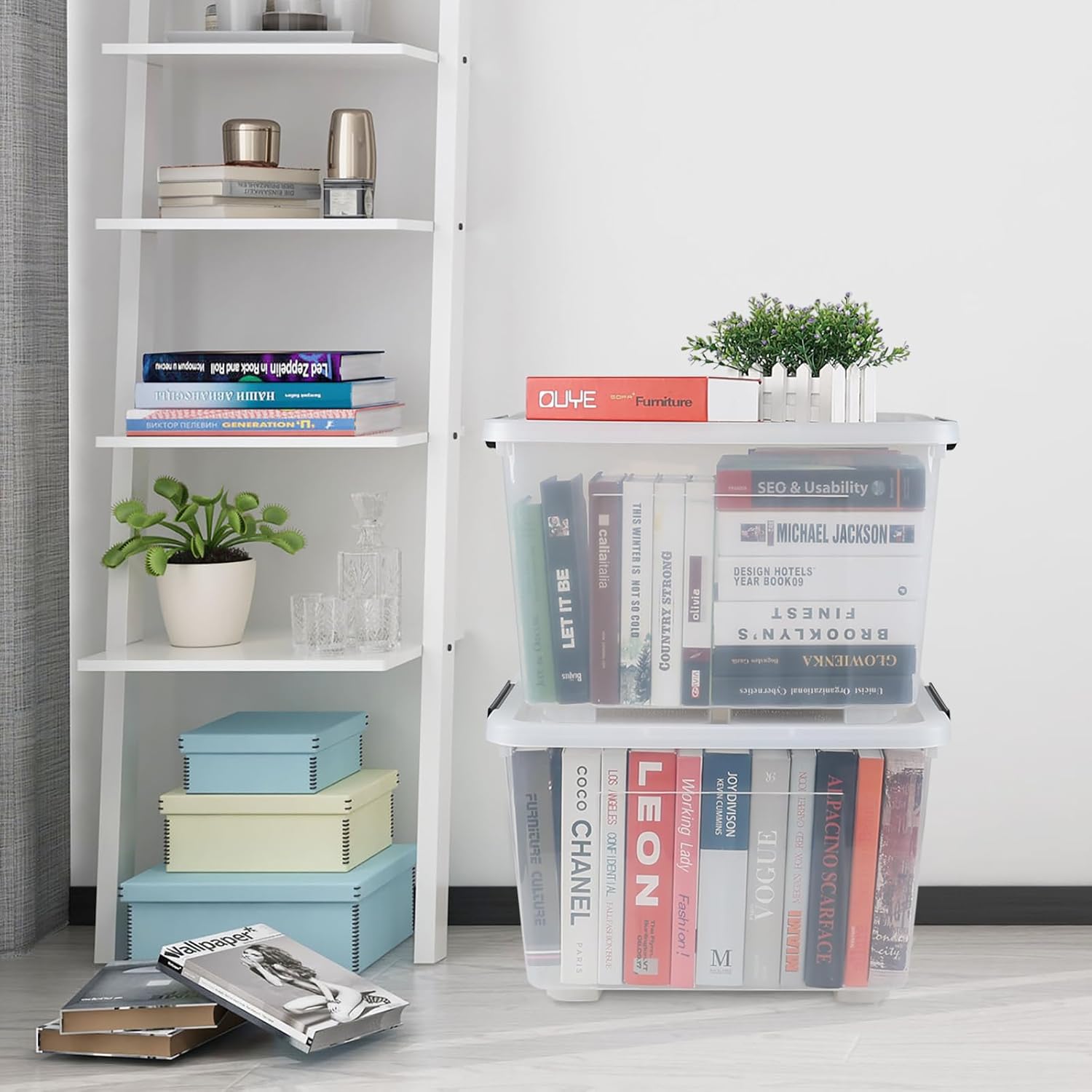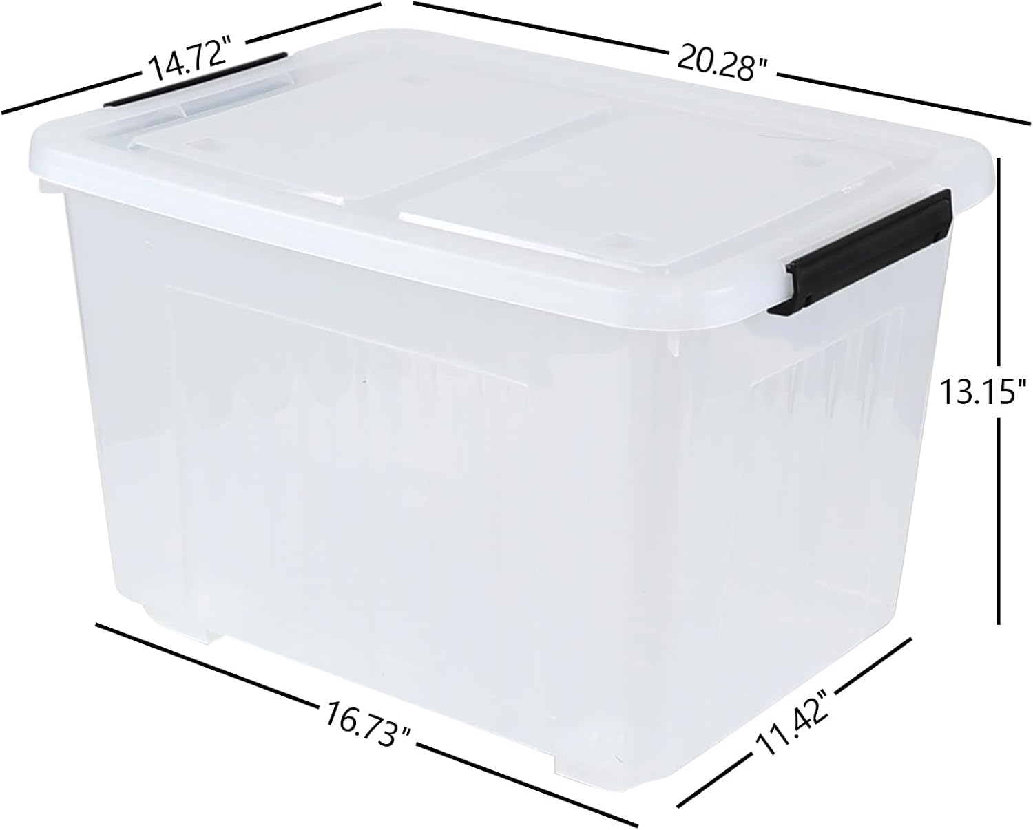 Wekioger 50 Quart Clear Latching Box with Wheels, 4 Packs Plastic Lidded Storage Bin