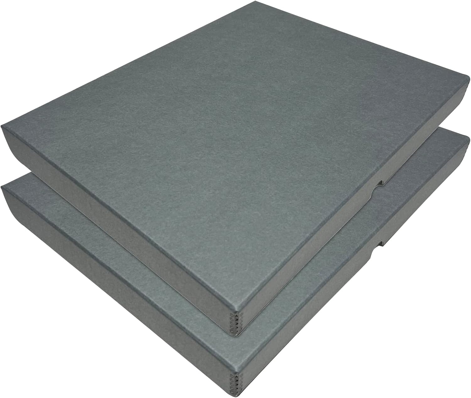 Lineco Folio Storage Box, Clamshell Design with Metal Edge. 16.5x20.5x1.75 Inches, Archival Boxboard, Preserve Photos, Cards, Magazines, Documents, Art, Ephemera, Family Records, Gray, Pack of 2
