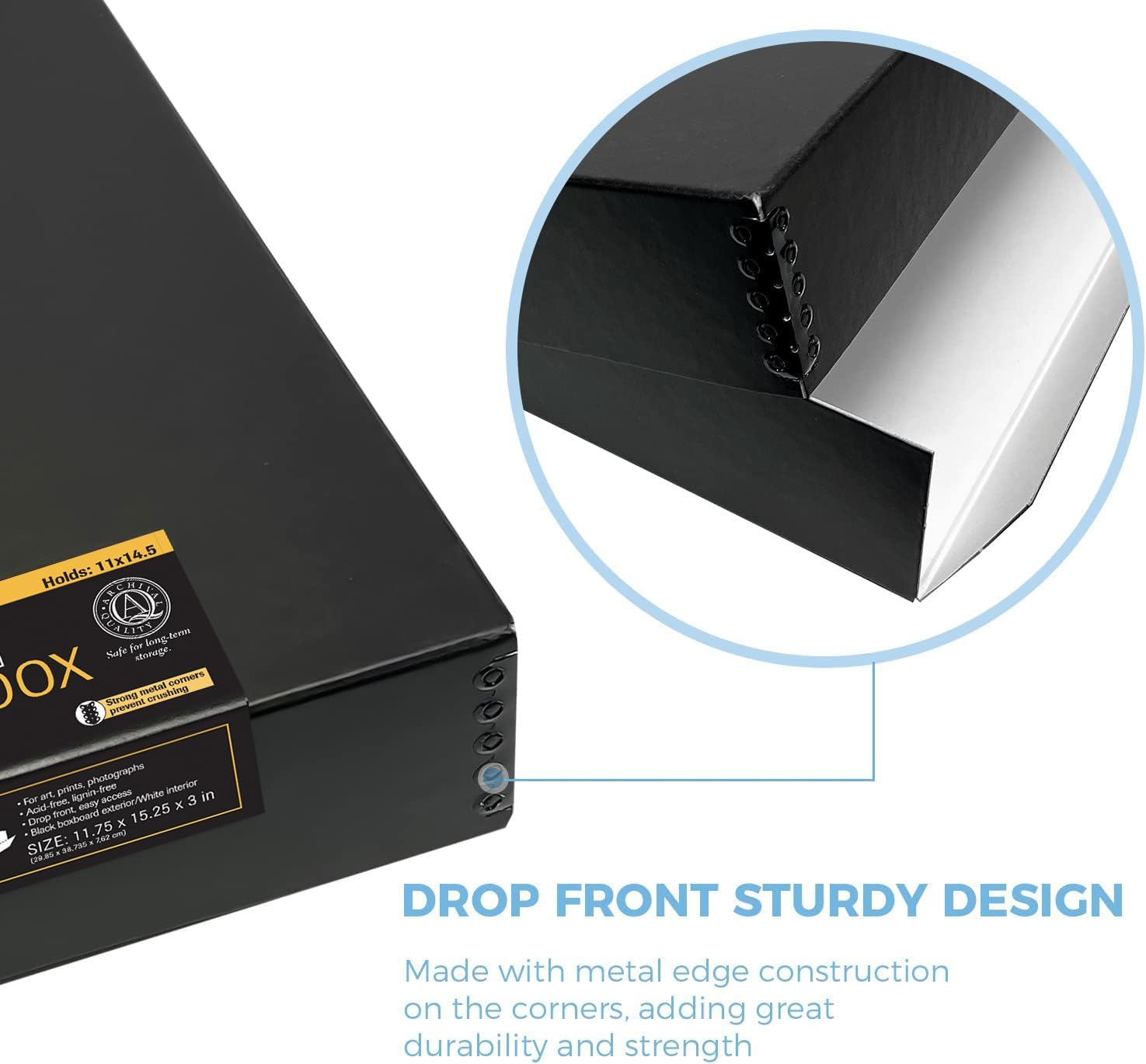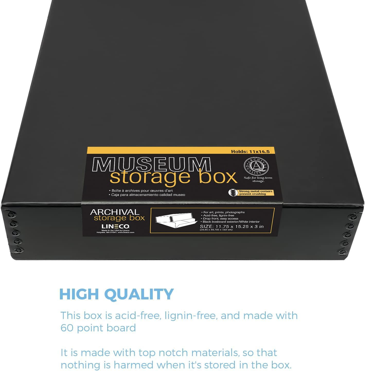 Lineco, 11x14 Black Museum Archival Storage Box, Drop Front Design, 11.75x15.25x3 in, Acid-Free with Metal Edge, Preserves Picture Longevity, Organize Photos Documents, Crafts, DIY, 2 Pack