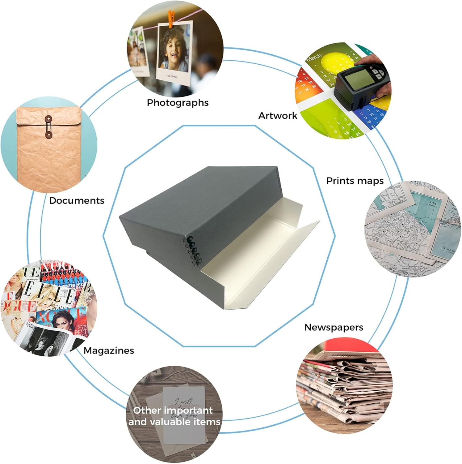 - Overall Size: 9.25" x 11.75" x 3" for 8.5x11 Documents, Newspapers, Certificates, Pictures, Important Delicate Prints, and Old Pictures