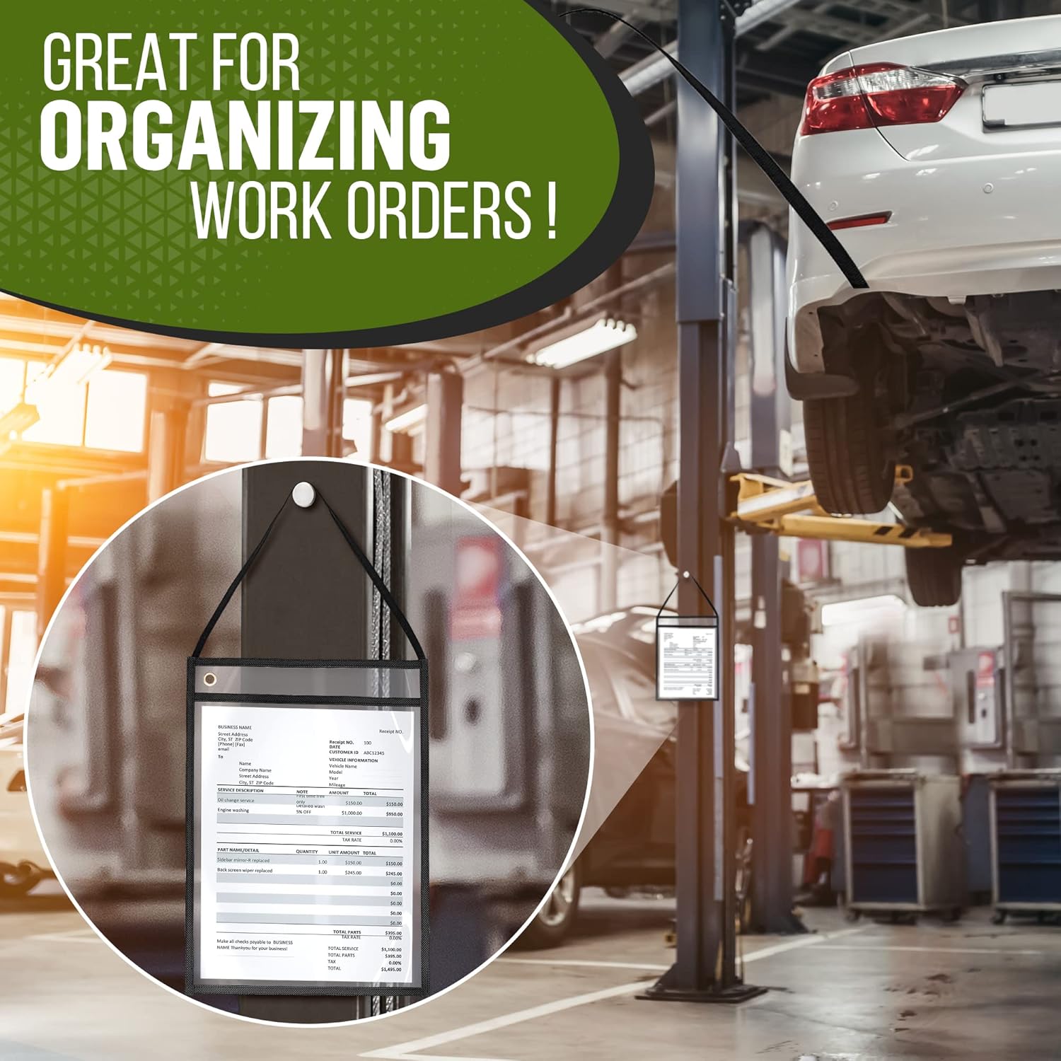 - ☑️ HIGH QUALITY MATERIAL - In our shop ticket holder we use only soft and strong vinyl to provide you durable & heavy duty plastic sleeves. Heavyweight plastic is great for withstanding daily usage of work at garage, laboratory, shop, warehouse etc.