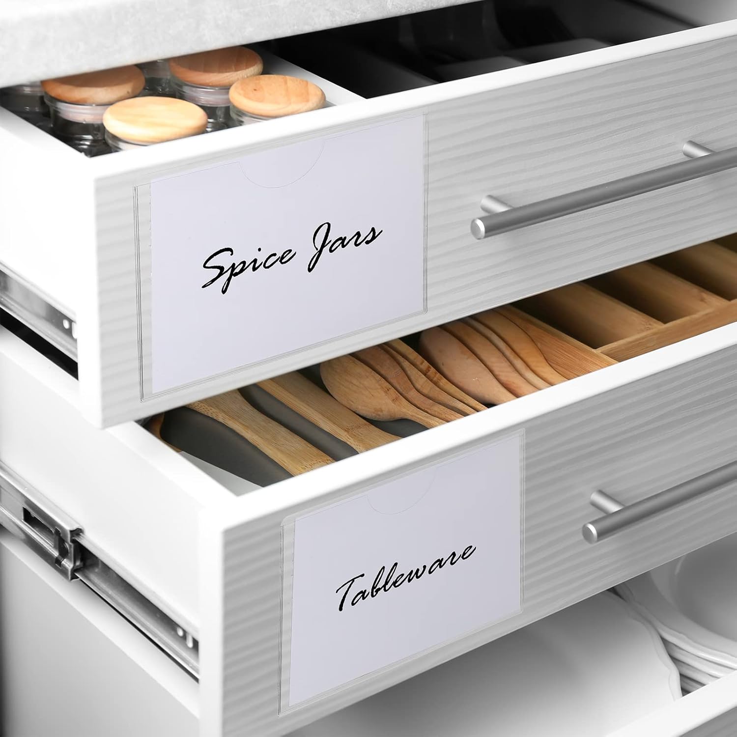 - Broad Usages for: our adhesive label pocket is suitable for most places, such as office, school, home and so on; It can keep these places in order, look very clean and tidy, and is a good choice of accessory