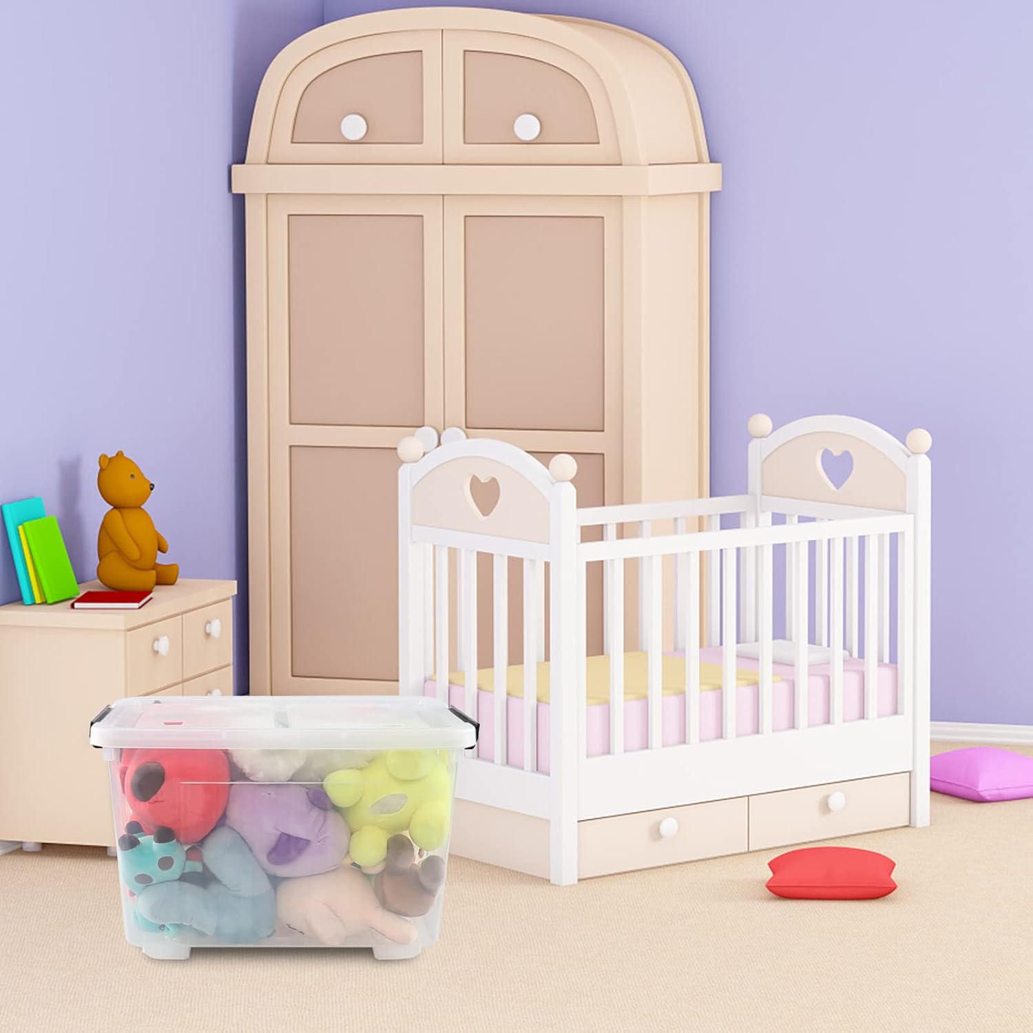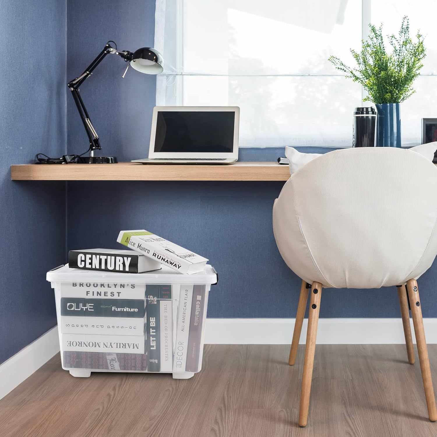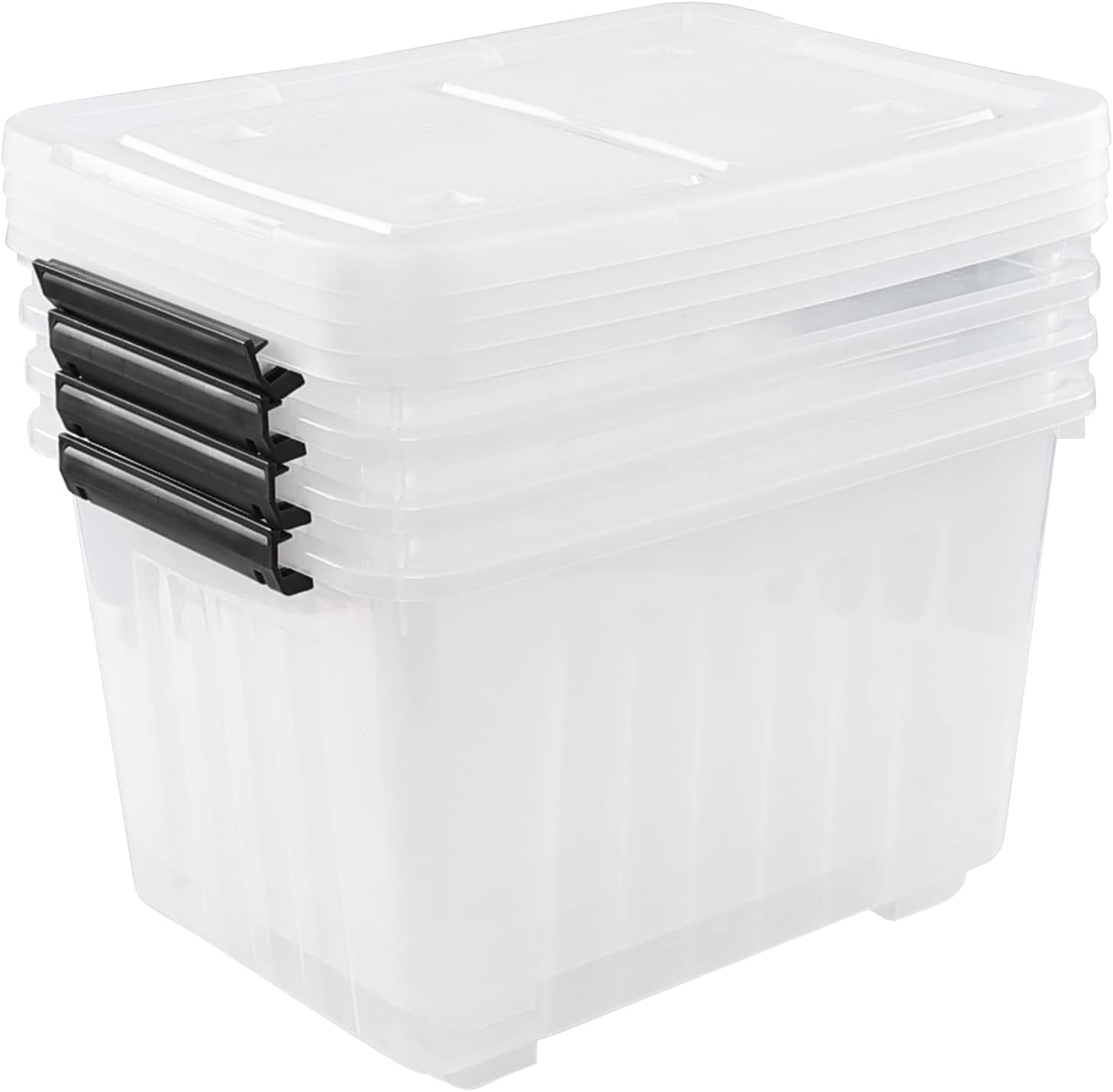 Farmoon 4 Pack 30 Quart Plastic Latching Storage Box Bin with Wheels, Clear
