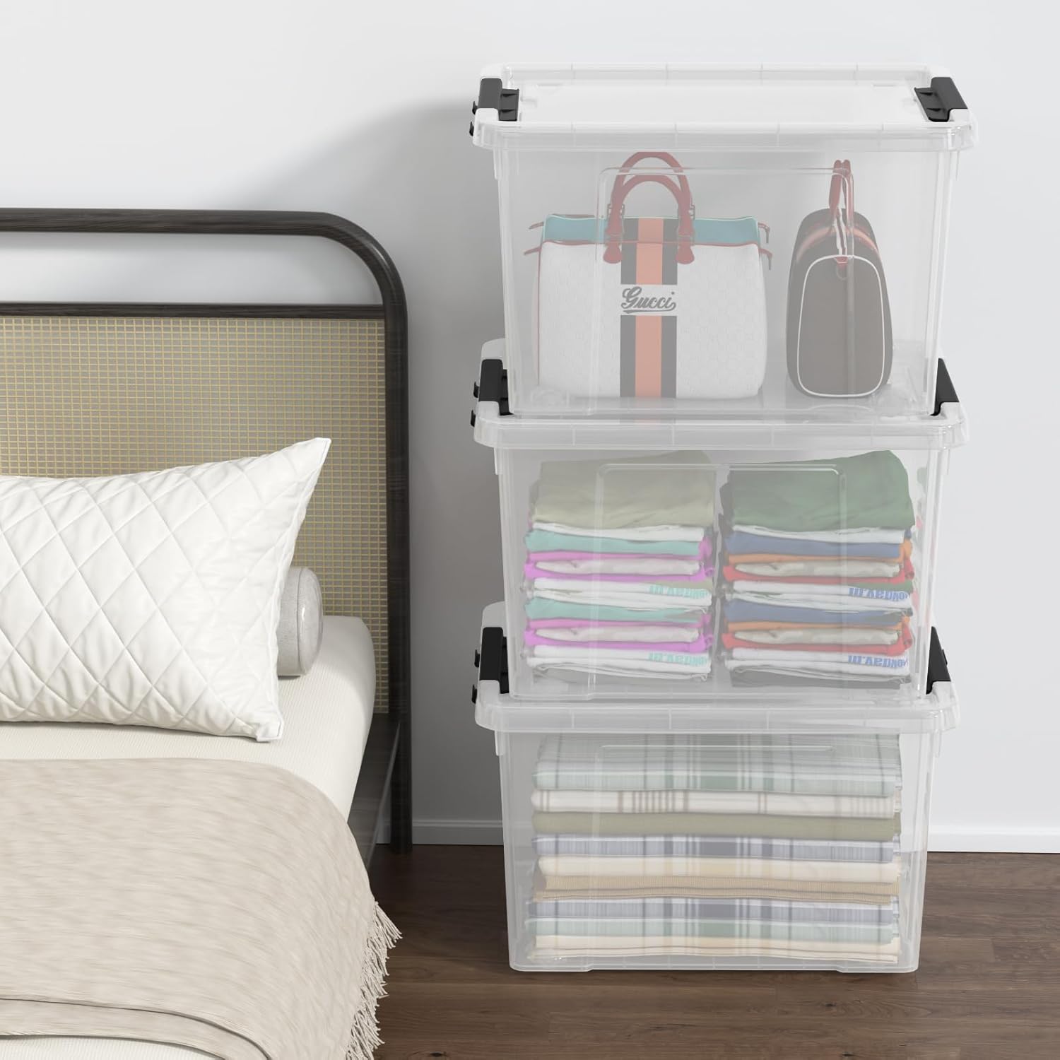 4-Pack 34 Quart Clear Plastic Storage Boxes with Lids, Latching Bins Totes with Wheels