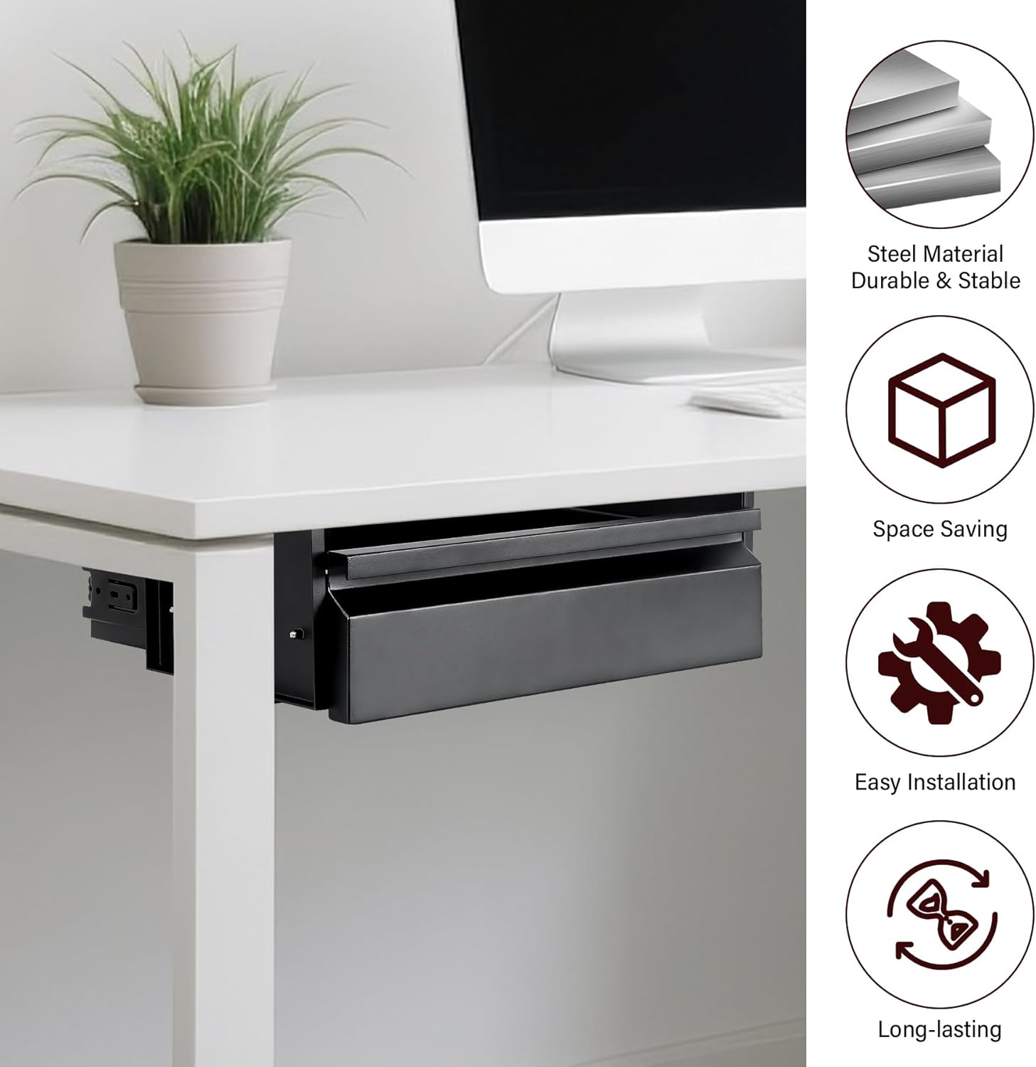 - Durable & Easy Access: Under the desk drawer made of sturdy materials and smooth sliding mechanism ensure a sturdy setting that is very convenient for opening and closing under-desk drawers, saving you time and increasing productivity