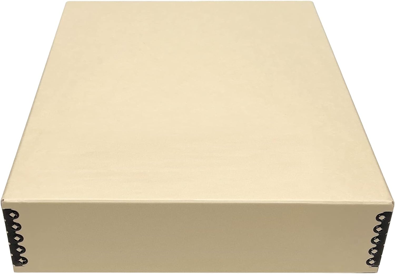 Golden State Art, Archival Storage Box, Acid-Free Drop Front Museum Box with Metal Edge for Storing Artwork Photos Documents Prints Arts And Crafts (Tan-11.75x15.25x3 Inches)
