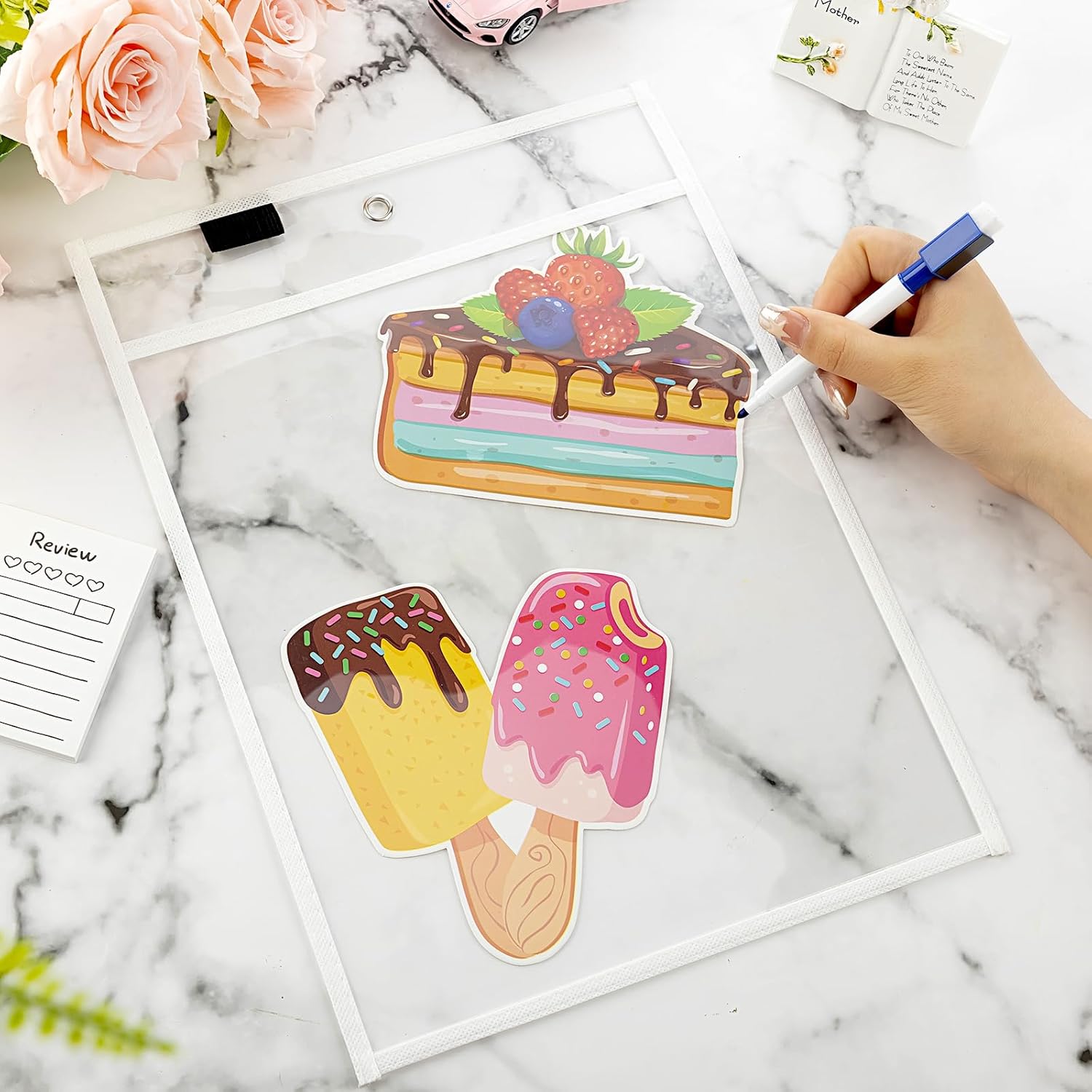 - Clear Design: the reusable dry erase pockets are clear, convenient for you to search documents you want, saving your time and energy; And there is a metal eyelet in the center, convenient for you to hang