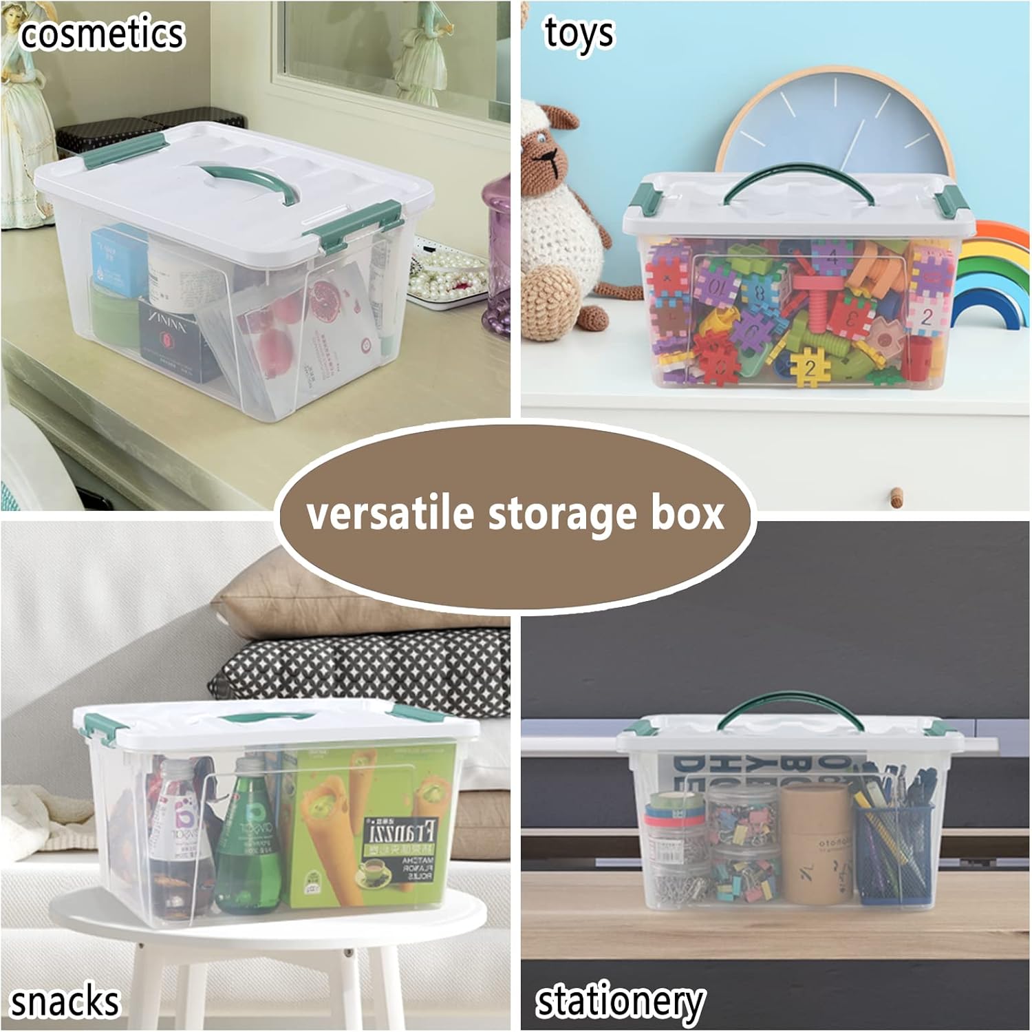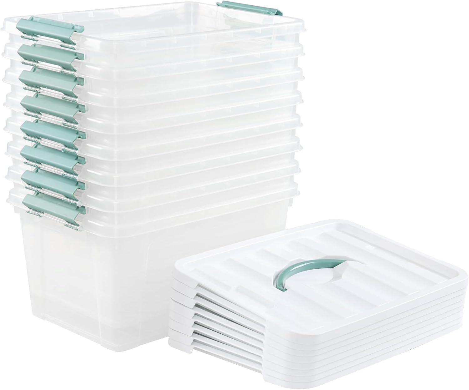 Pekky 14 Quart Plastic Lidded Storage Bins Set of 8, Clear Latching Storage Box with Handle