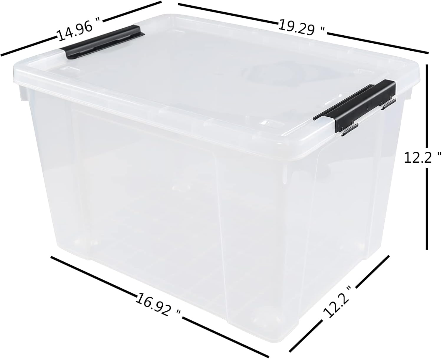 Drephia 4 Pack Clear Latch Storage Bin with Lid and Wheels, 50 L Large Plastic Storage Box