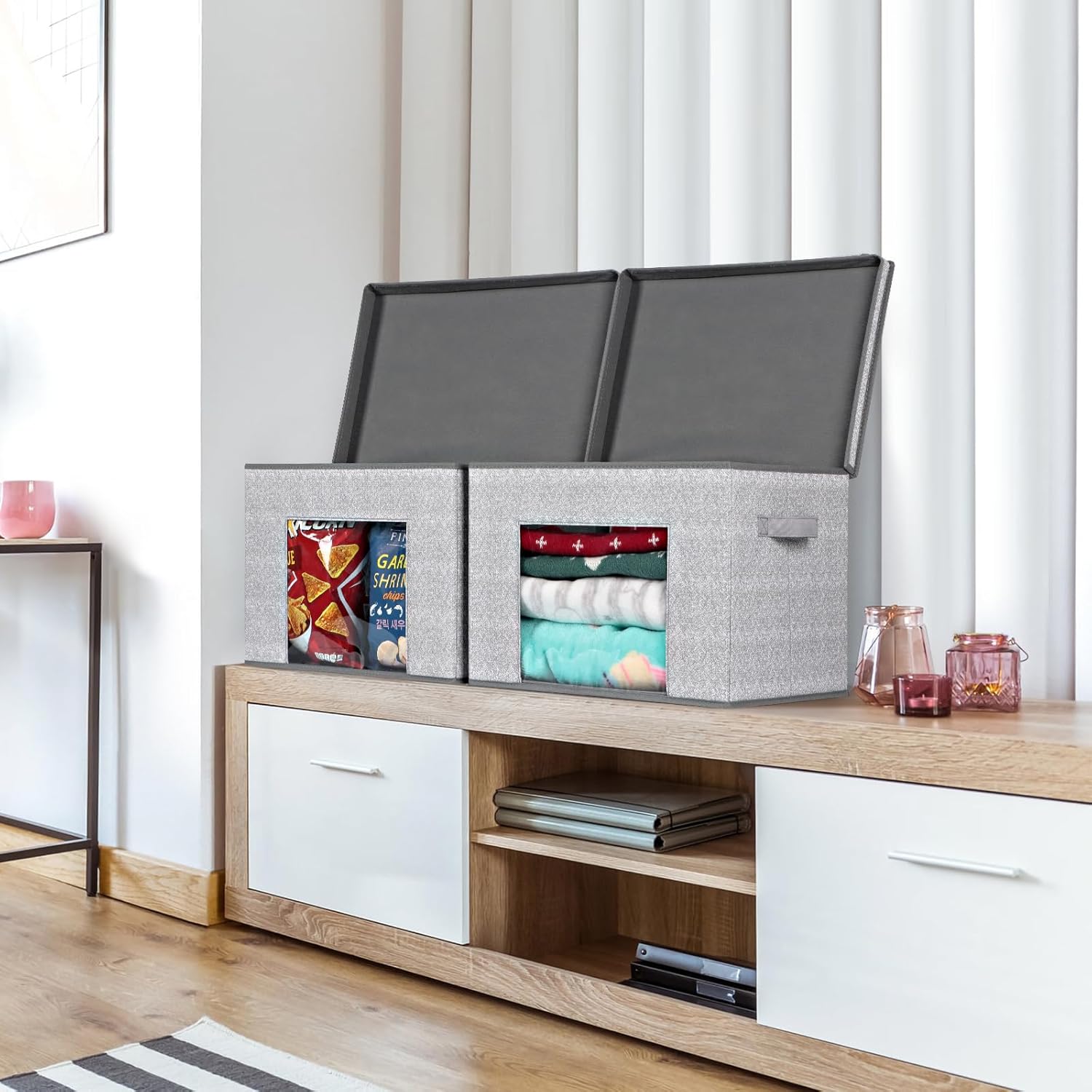 - 【Larger See-Through Window 】 - The clear see-through window is very user friendly for clearly showing what is inside the cloth storage box, easy to organize and easy to find.