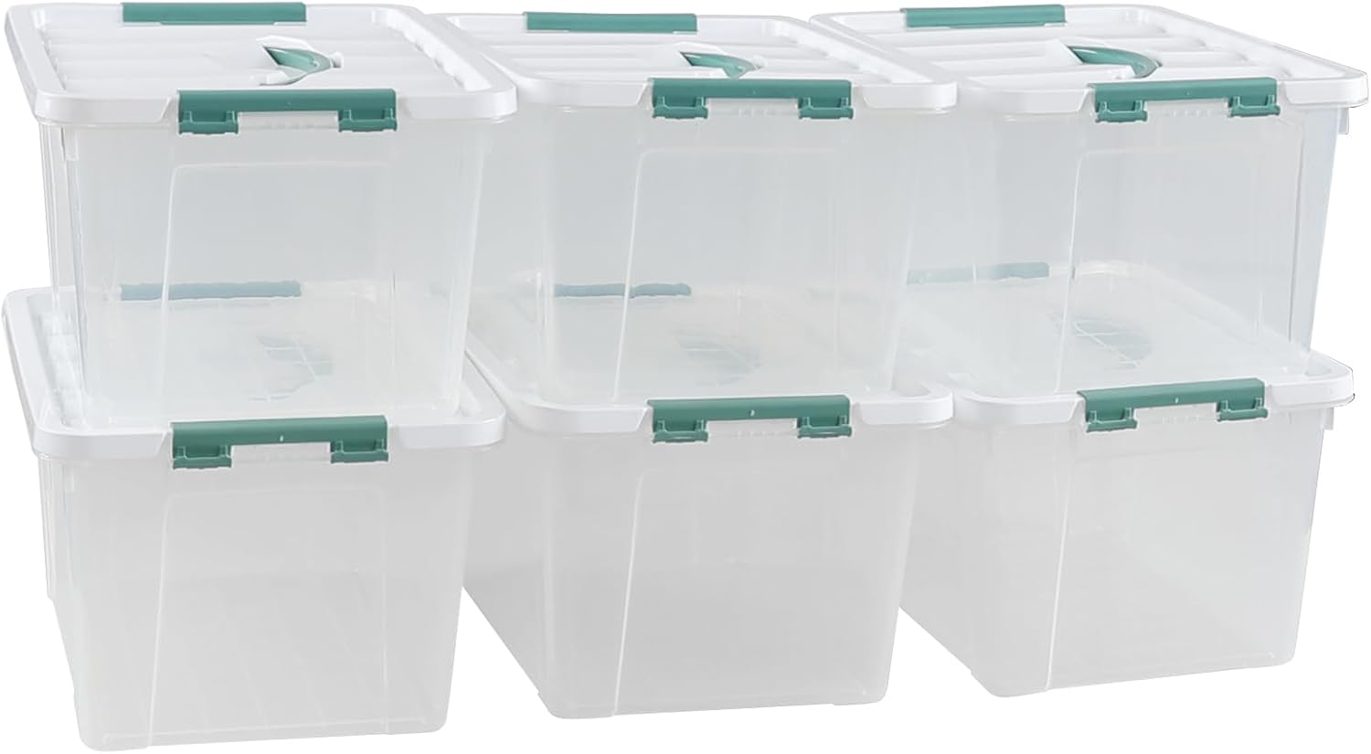 - Set of 6 clear latch containers, constructed from sturdy and durable plastic