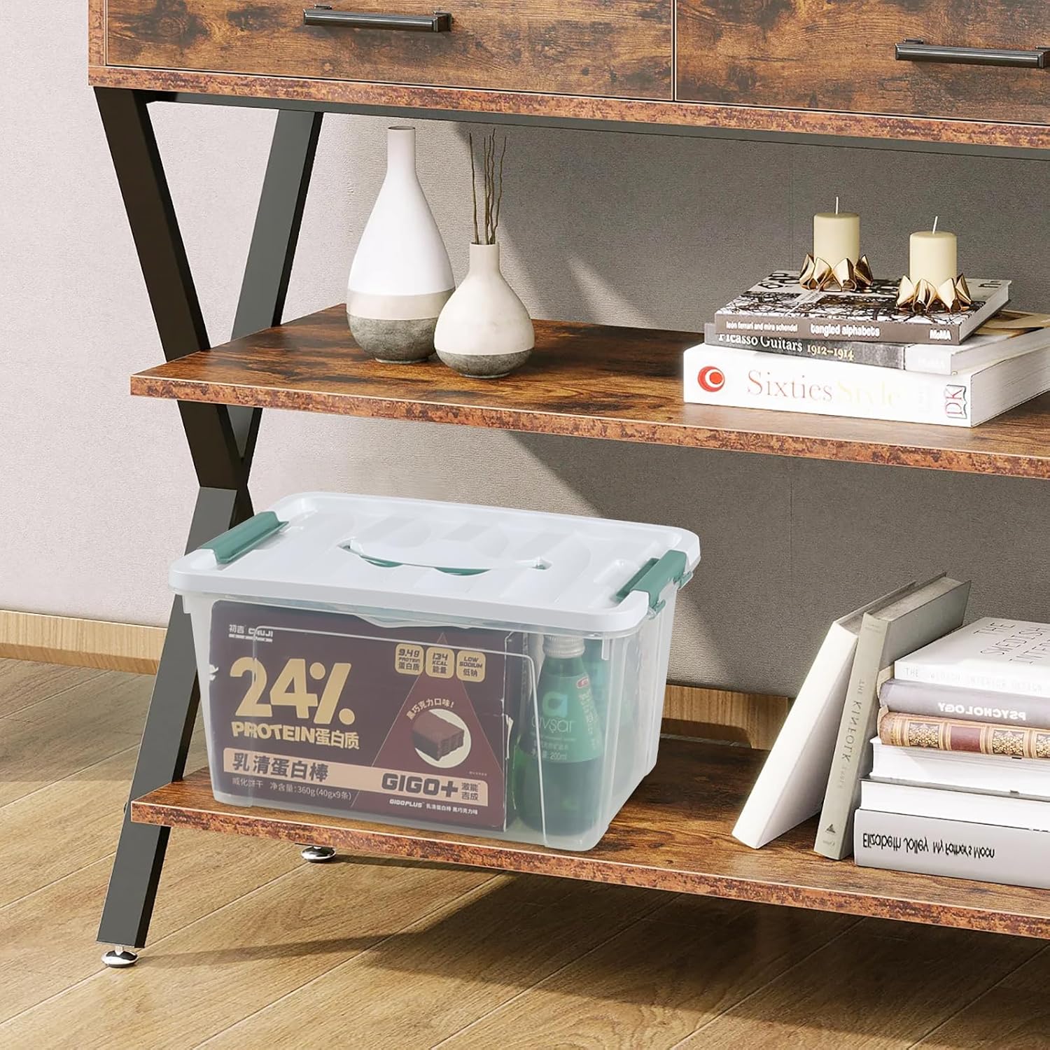 6 Pack 14 L Clear Storage Latch Box, Plastic Storage Bins with Lids