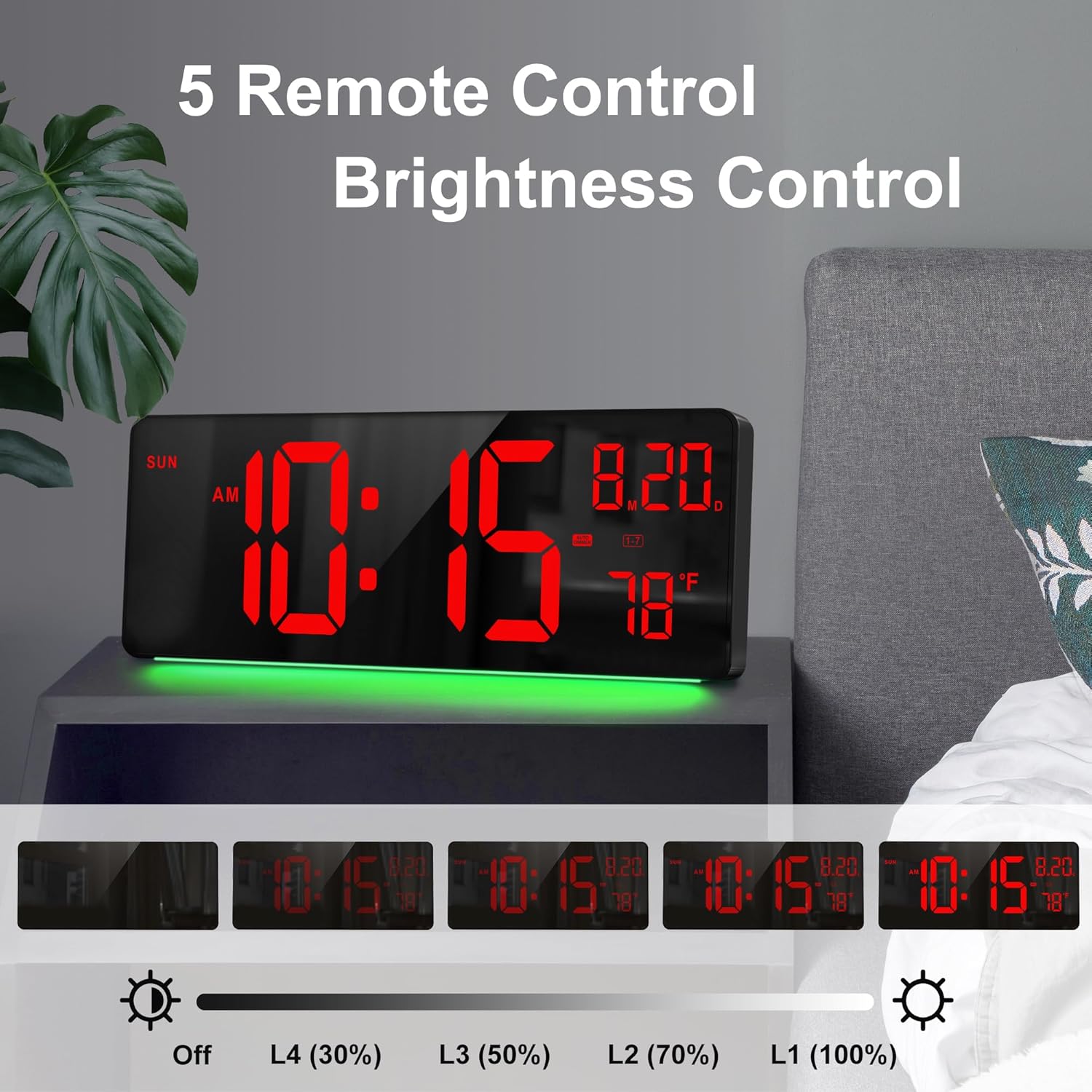 XREXS 16.5" Digital Clock Large Display with Remote Control 7 Color Changes Night Lights LED Wall Clock, Adjustable Dimmer, Temperature Clock for Bedroom, Desk Alarm Clock Gift for Teens Elderly
