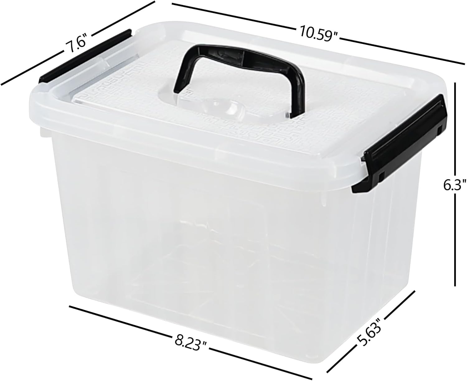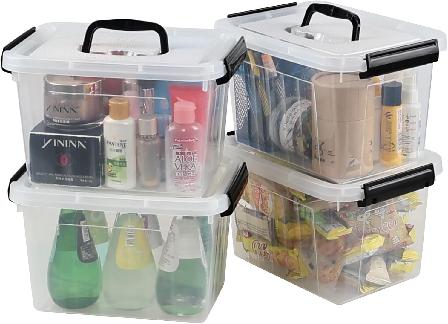 Wekioger 4 Pack 6 Quart Latching Box, Clear Lidded Storage Bins, Small Container with Handle