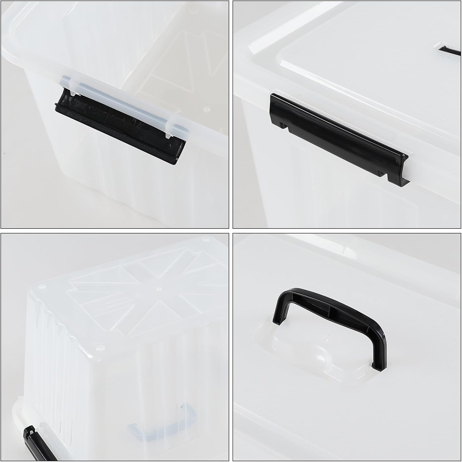Set of 4 Storage Bins with Latch Lids, Clear Plastic Storage Box with Handle, 18 L