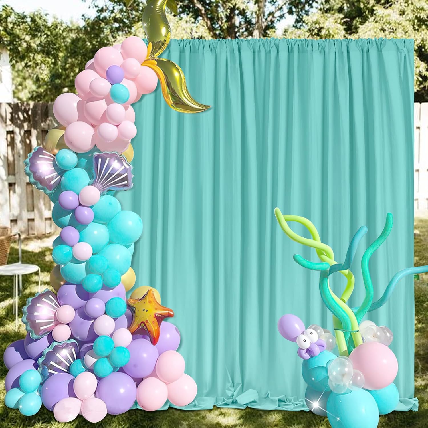 Turquoise Backdrop Curtains: 6 Panels 5ft x 10ft Polyester Backdrop Drapes for Wedding Mermaid Party Photography Decorations 30ft x 10ft
