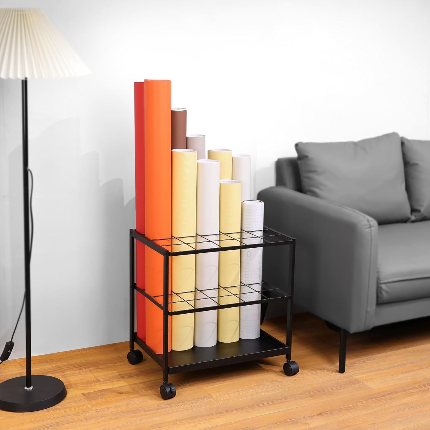 - Sturdy Dual-Layer Construction: Our Blueprint Holder features a sturdy metal grid, ensuring secure organization for blueprints and vinyl rolls without tilting. With 20 slots, it effectively accommodates flat files, posters, Wrapping Paper and butcher paper