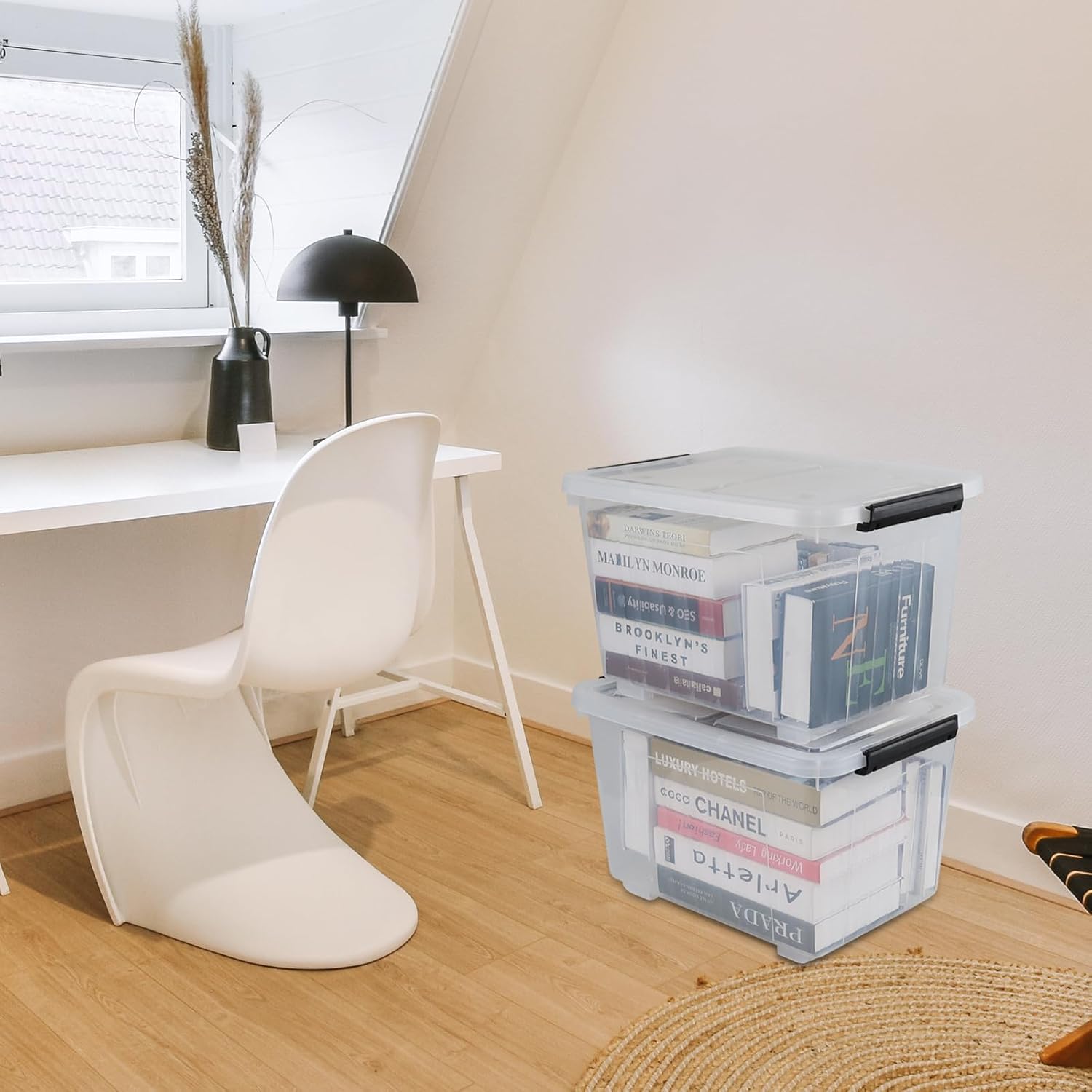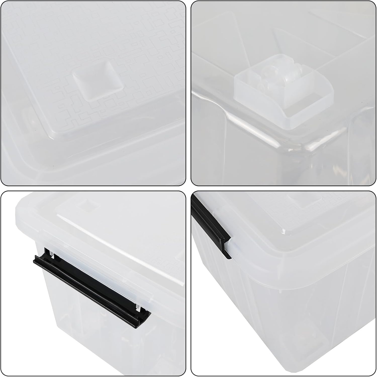 30 Quart Clear Plastic Latch Storage Bins with Wheels, 4-Pack Wheeled Clear Storage Totes