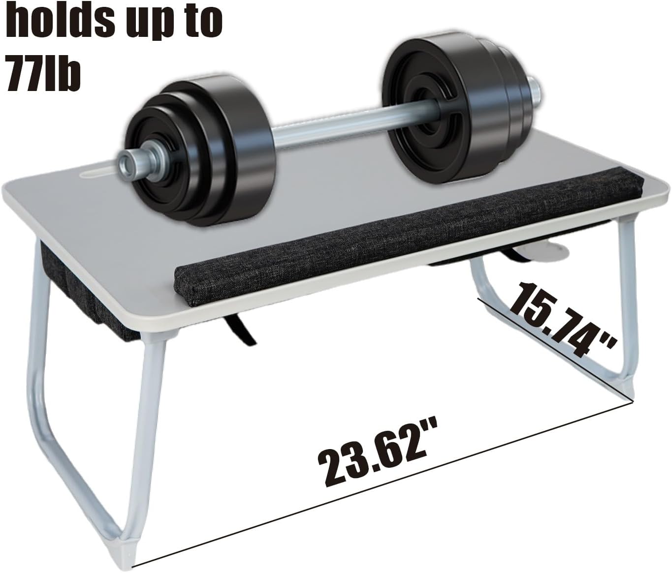 - 【🌿 Eco-Friendly Materials & Sturdy Build】With dimensions of 23.6 x 15.7 inches, this table provides a roomy surface. The sponge pad on the back of the tabletop allows height adjustments for added comfort.Made from sustainable MDF and solid wood particle board, this lap desk combines durability with eco-conscious design. Its foldable structure enhances portability while supporting up to 77 pounds with ease.
