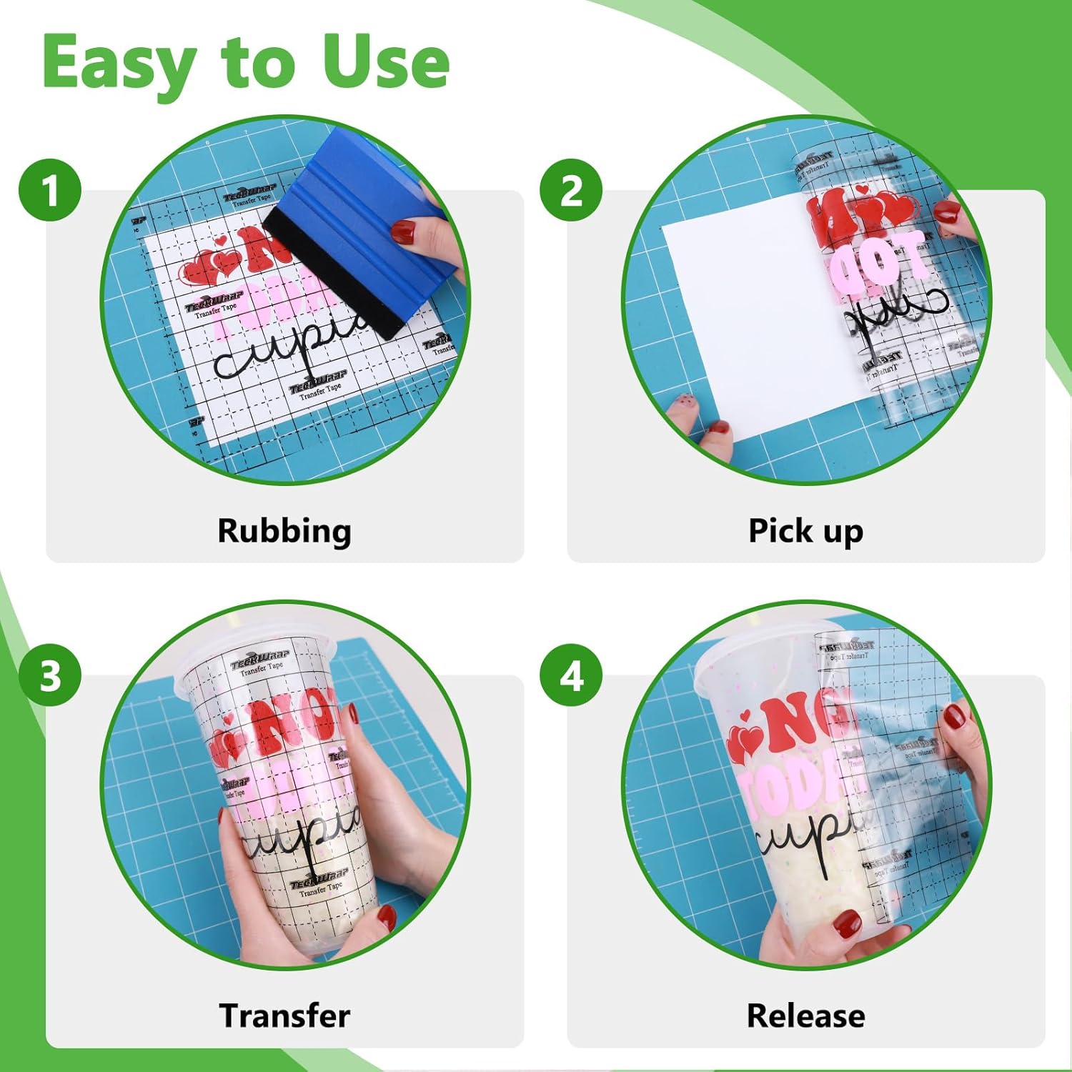 - No Sticky Residue Left Behind: TECKWRAP transfer tape for vinyl is the solution to the sticky residue that transfer tapes often leave on your vinyl or the applied surface. It's crafted to eliminate this problem, ensuring no sticky residue is left after the transfer