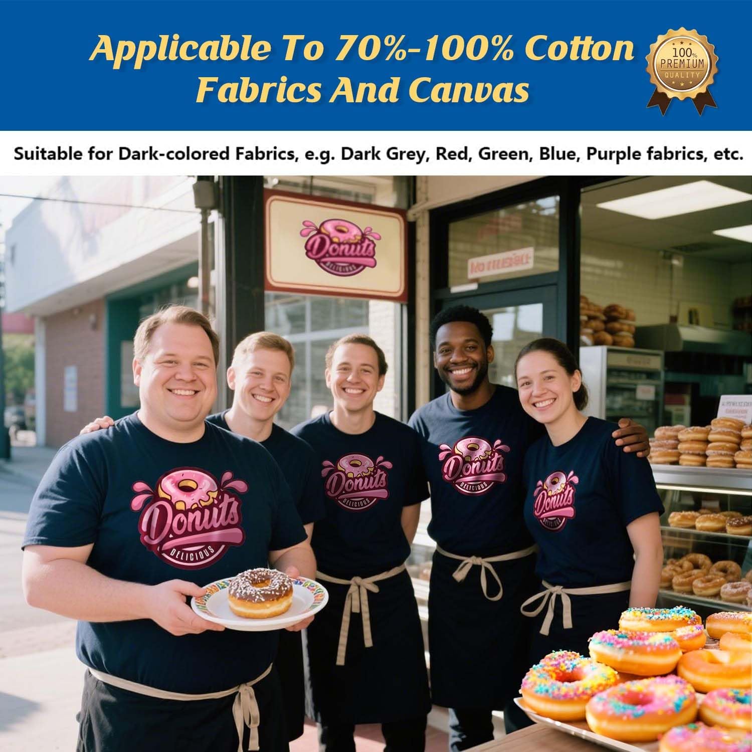 - 💕APPLICATIONS: Transfer text, images, photos and pictures onto Black and Dark color 70%~100% cotton fabrics, such as T shirts, hoodies, totes, canvas bags, aprons, masks, pillow cases, cushion covers, tablecloths, flags and banners. Make custom DIY gifts to your friends or family on Mother's Day, Father's Day, Birthday, Thanksgiving, Easter, Halloween, Christmas, Valentine's Day or Wedding Day.