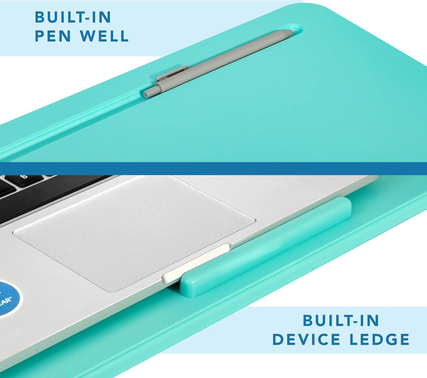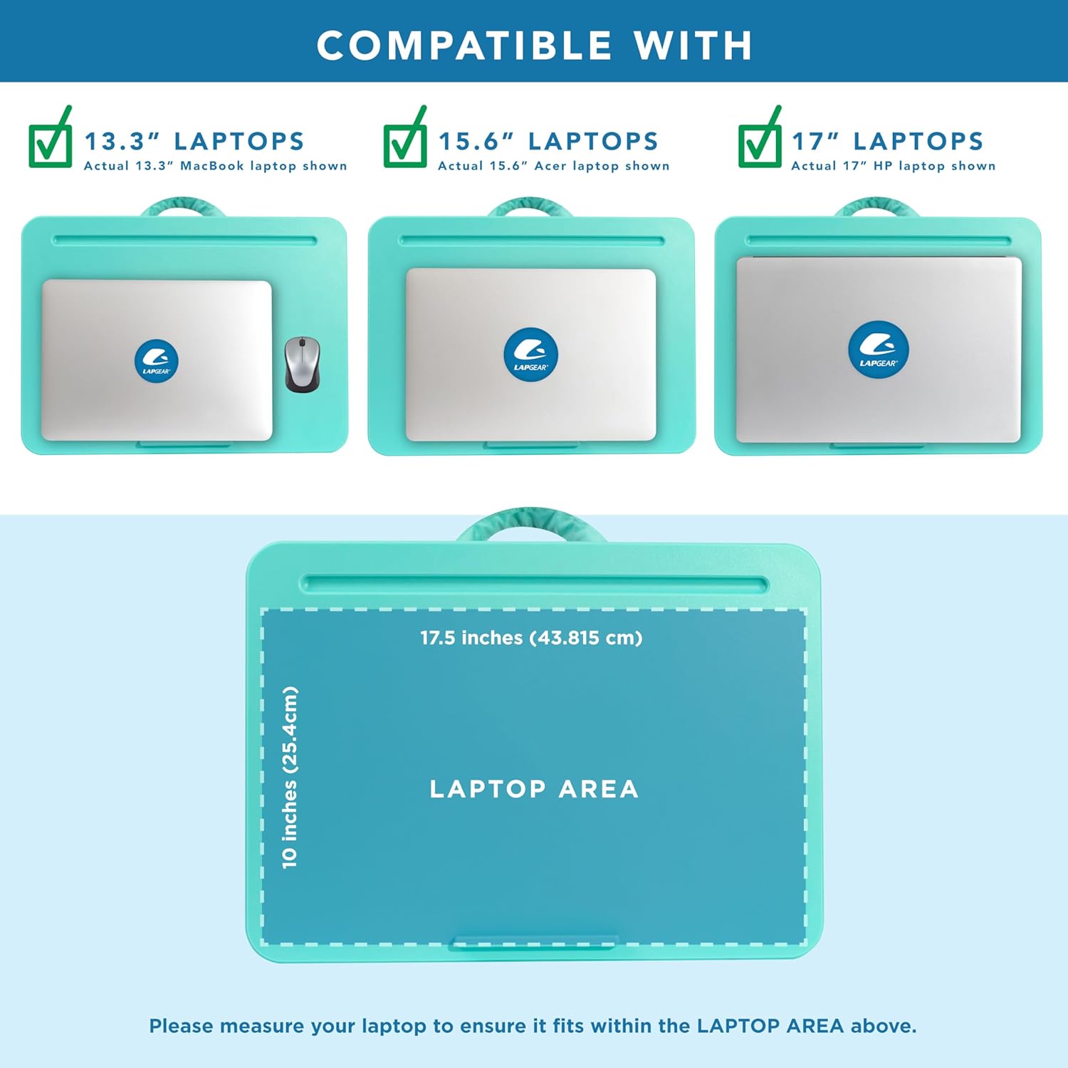 LAPGEAR Original Lap Desk – Large (17.9” x 13”) | Fits Up to 17.3” Laptops | Cushioned with Device Ledge, Pencil Tray & Handle | Portable & Lightweight | Aqua Sky – Style No. 45159