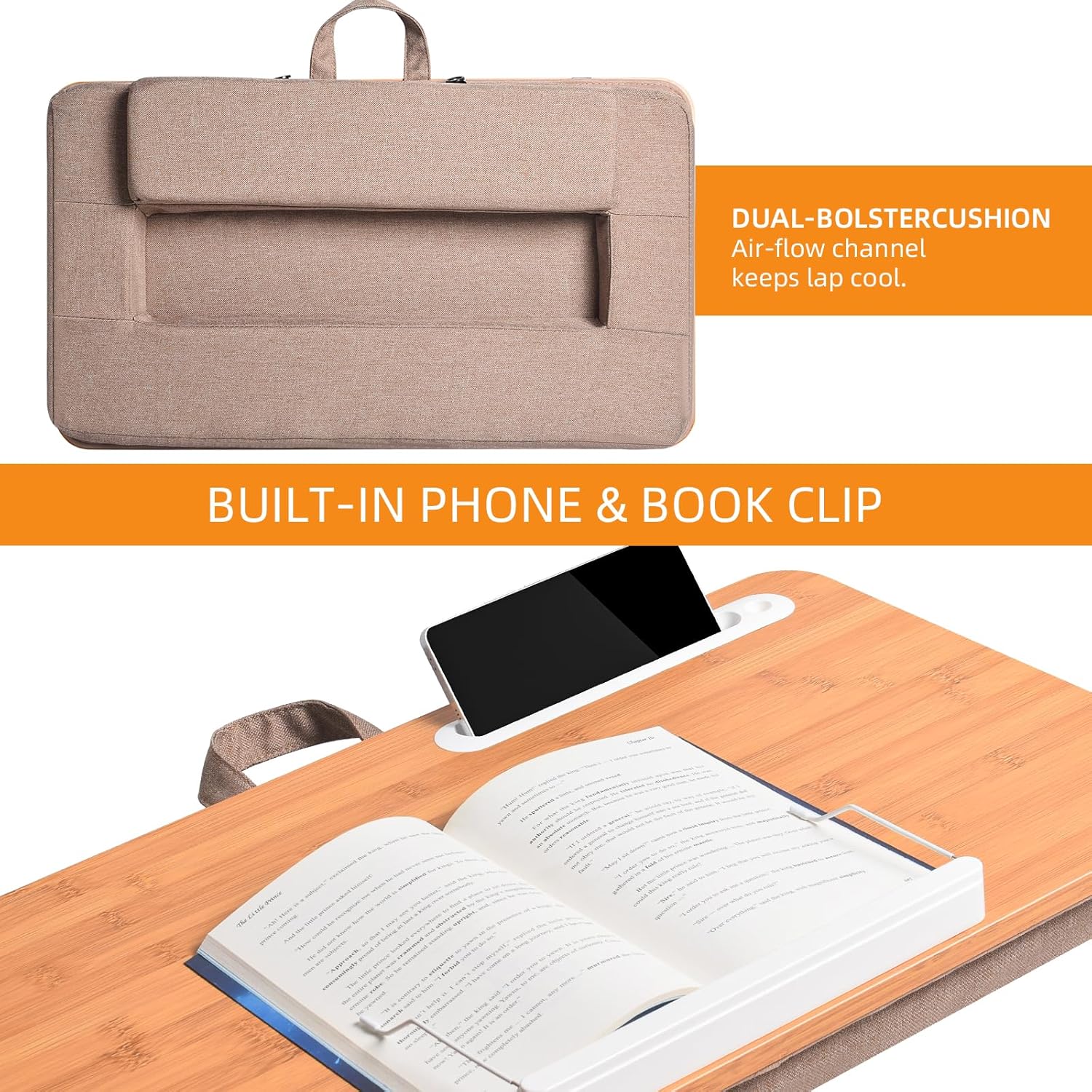 - Premium Wood & Cushion Design: Crafted with durable wood and a plush cushion, our extra-large lap desk features convenient slots for phones, pens, and tablets, offering the most spacious workspace available.