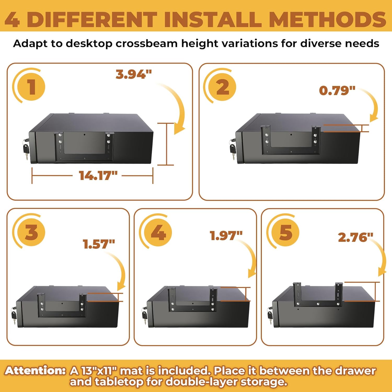 - πππππ πππππππ πππππ: Measuring 14.18" W x 11.42" D x 2.95" (with interior dimensions of 13.78" W x 9.76" D x 2.95"), this under desk drawer helps keep your workspace neat and professional. Keys are packed in individual bagsβplease check the package to find them first