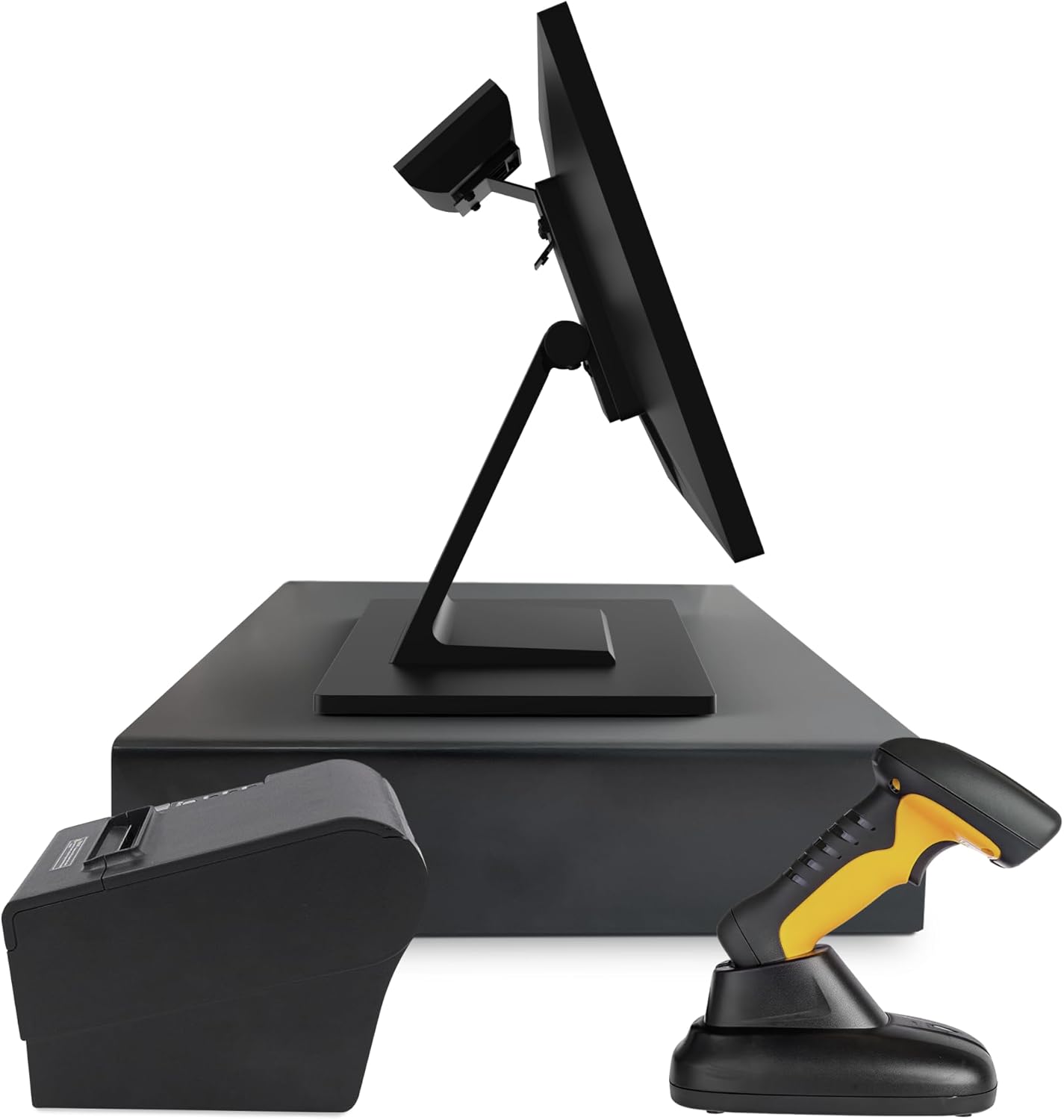 - Professional All-in-One POS System: The SmartPOS NX comes with a 15.6" cashier touchscreen, VFD customer display, a cash drawer, a barcode scanner, and a thermal printer, ensuring a seamless checkout experience.